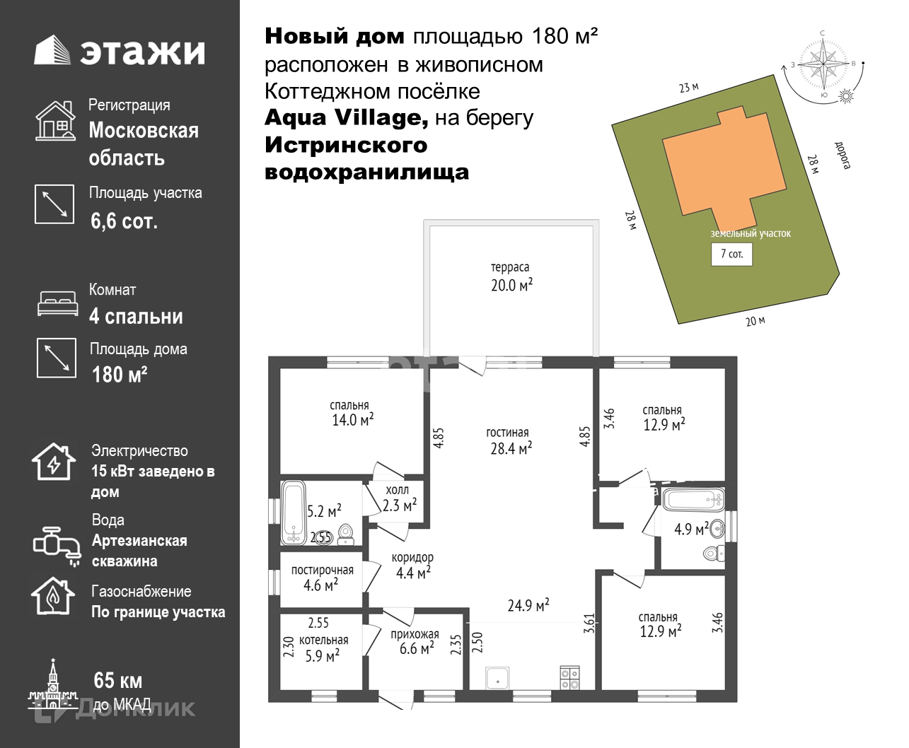 Прекрасный новый дом площадью 180 м² расположен на участке правильной формы 7 соток в живописном Коттеджном посёлке Aqua Village, который находится на берегу Истринского водохранилища. Готовая документация, и возможность быстрой и легкой сделки.