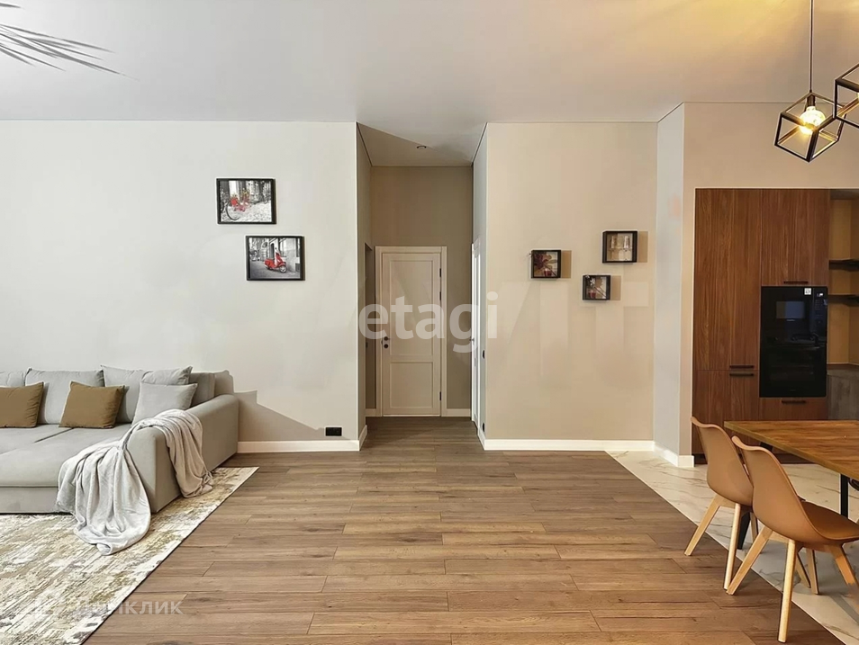 Интерьеры дома воплощают лаконичные тона и дизайнерскую отделку, использующую также натуральные материалы. Каждая деталь отражает заботу о комфорте и гармонии, а высококачественная мебель и бытовая техника добавляют этому пространству штрих изысканности.