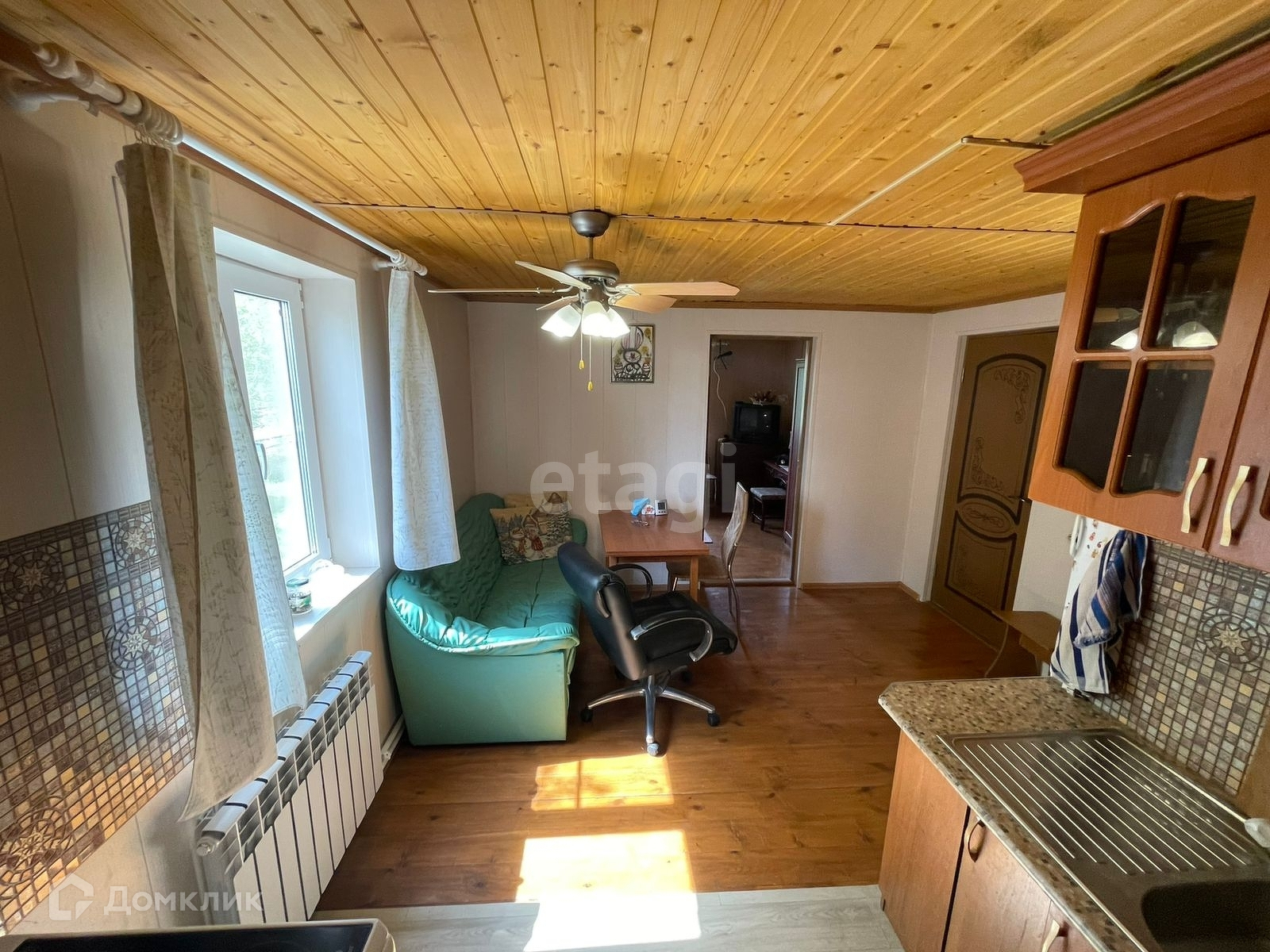 Дом граничит только с двумя соседскими участками, построен из оцилиндрованного бруса, внутри утеплен и полностью отделан декоративными МДФ панелями, перегородки сделаны так же из бруса, стеклопакеты. Размер 8х8 м. в два этажа с шатровой крышей (чердак). В доме проведены батареи с электрическим котлом отопления и бойлером, есть душевая кабина, 2 раковины, унитаз, в доме есть запас 1 куб. воды (на случай поломок или отключения эл-ва). На участке сделана скважина, септик из 3-х колодцев, каждый по 3 кольца с переливом. Также на участке сделана большая закрытая беседка, установлен металлический блок контейнер с сан узлом и душем. Земельный участок выровнен, посажены плодовые деревья, кустарники, цветы, ягоды, зелень.