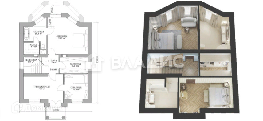 Высота потолков 3.2 м