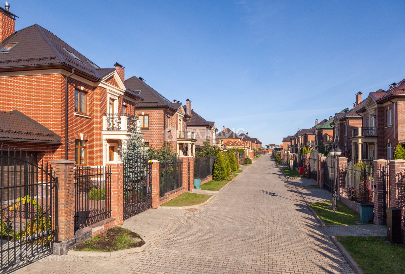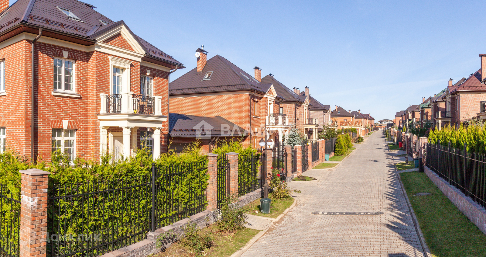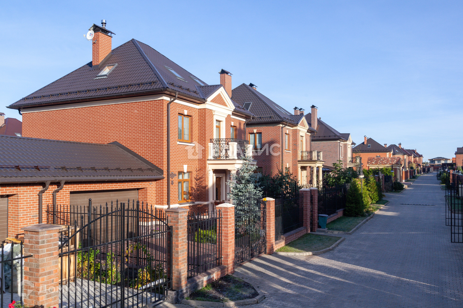 Все дома в одном архитектурном стиле.