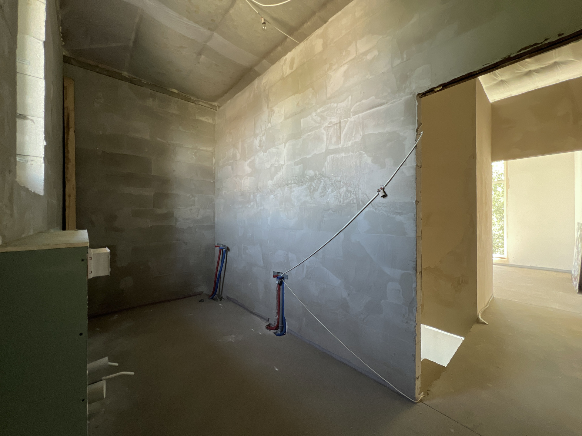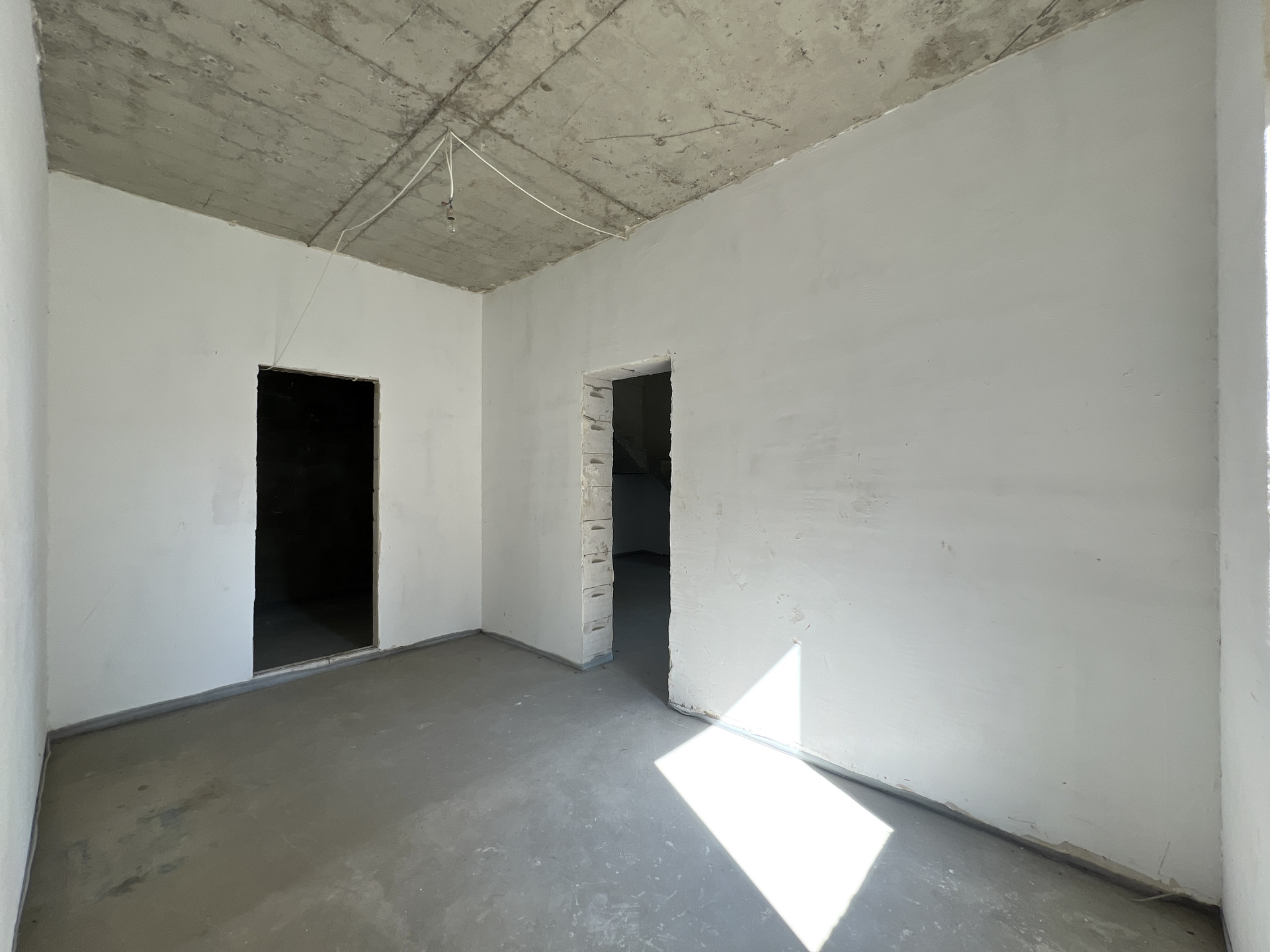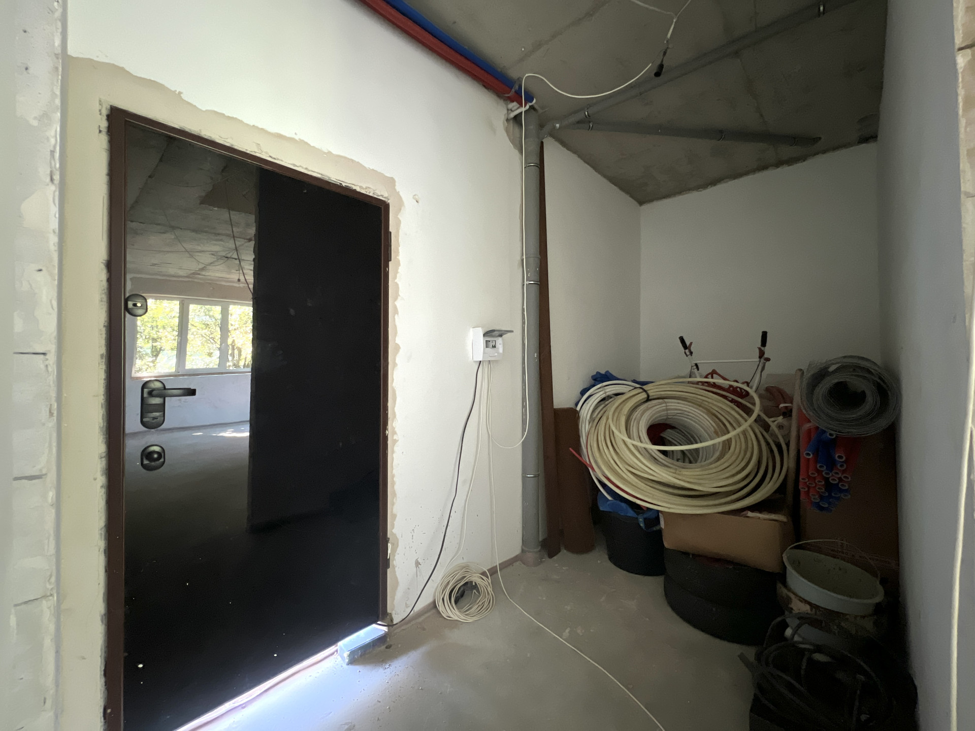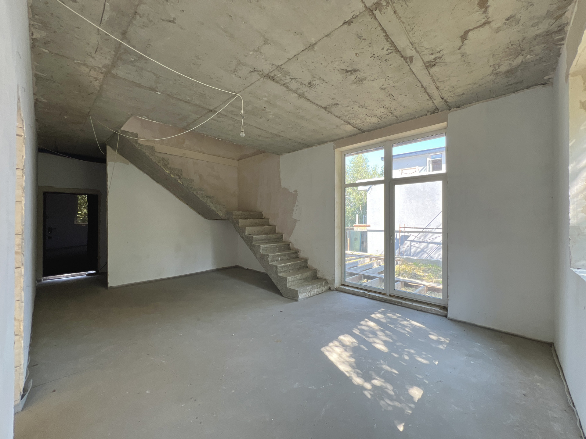 Внутренняя отделка дома - черновая отделка. Окна в доме — двухкамерные пластиковые стеклопакеты. На входе установлена цельнометаллическая дверь с терморазрывом. Крыша дома — плоская, повышенной устойчивости к сильным ветрам, покрыта металлической черепицей.