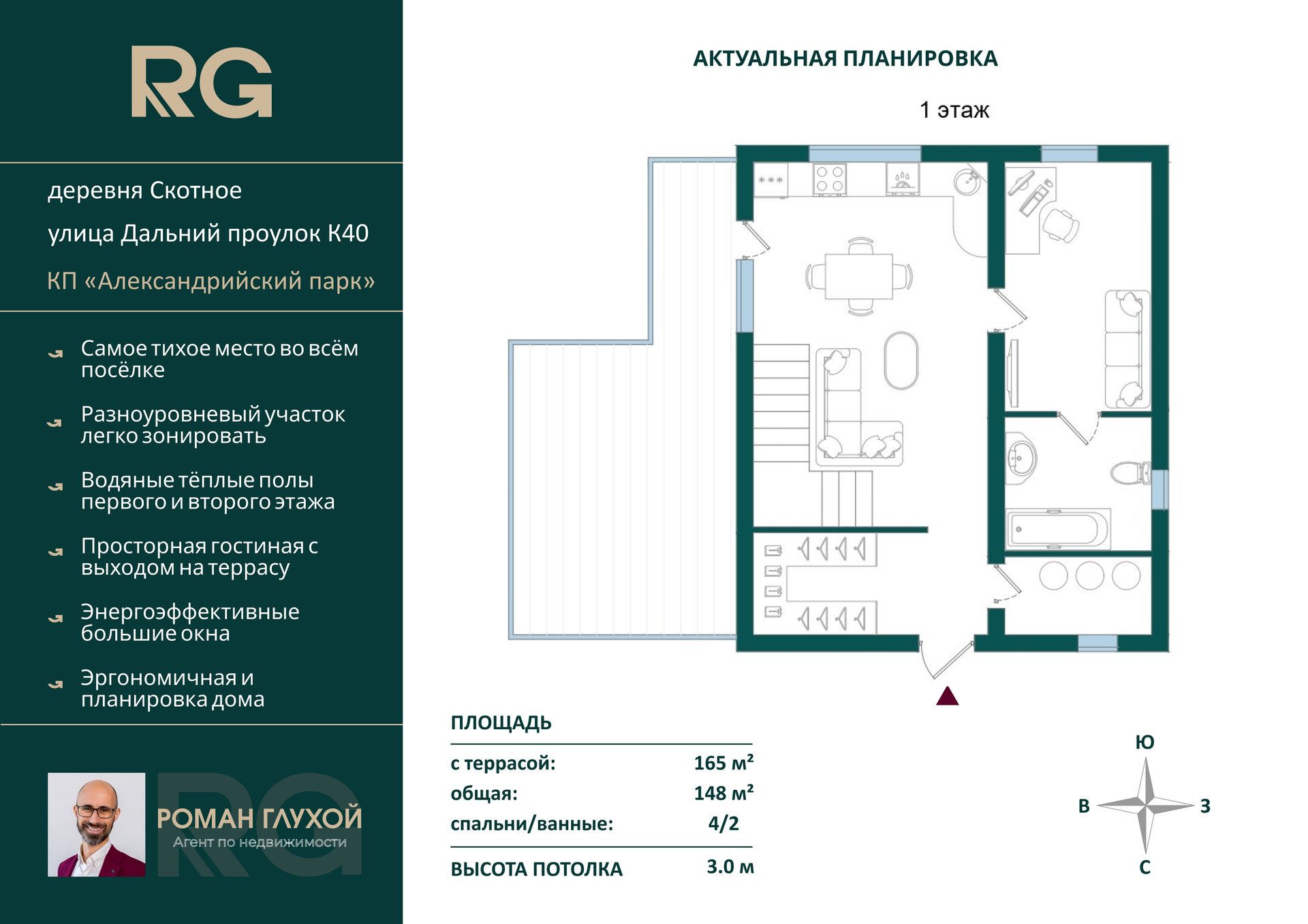Здесь мы предлагаем вам рассмотреть дом площадью 165 квадратных метров, построенный в 2023 году. Ваш участок правильной формы, с парковочной площадкой для автомобиля. Межевание участка уже выполнено. У вас также будет возможность воспользоваться ипотекой или использовать материнский капитал.