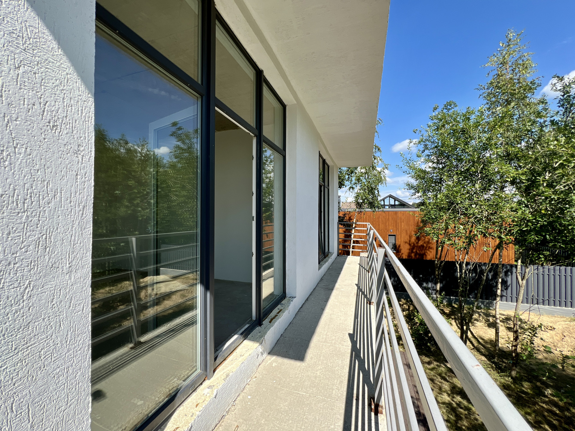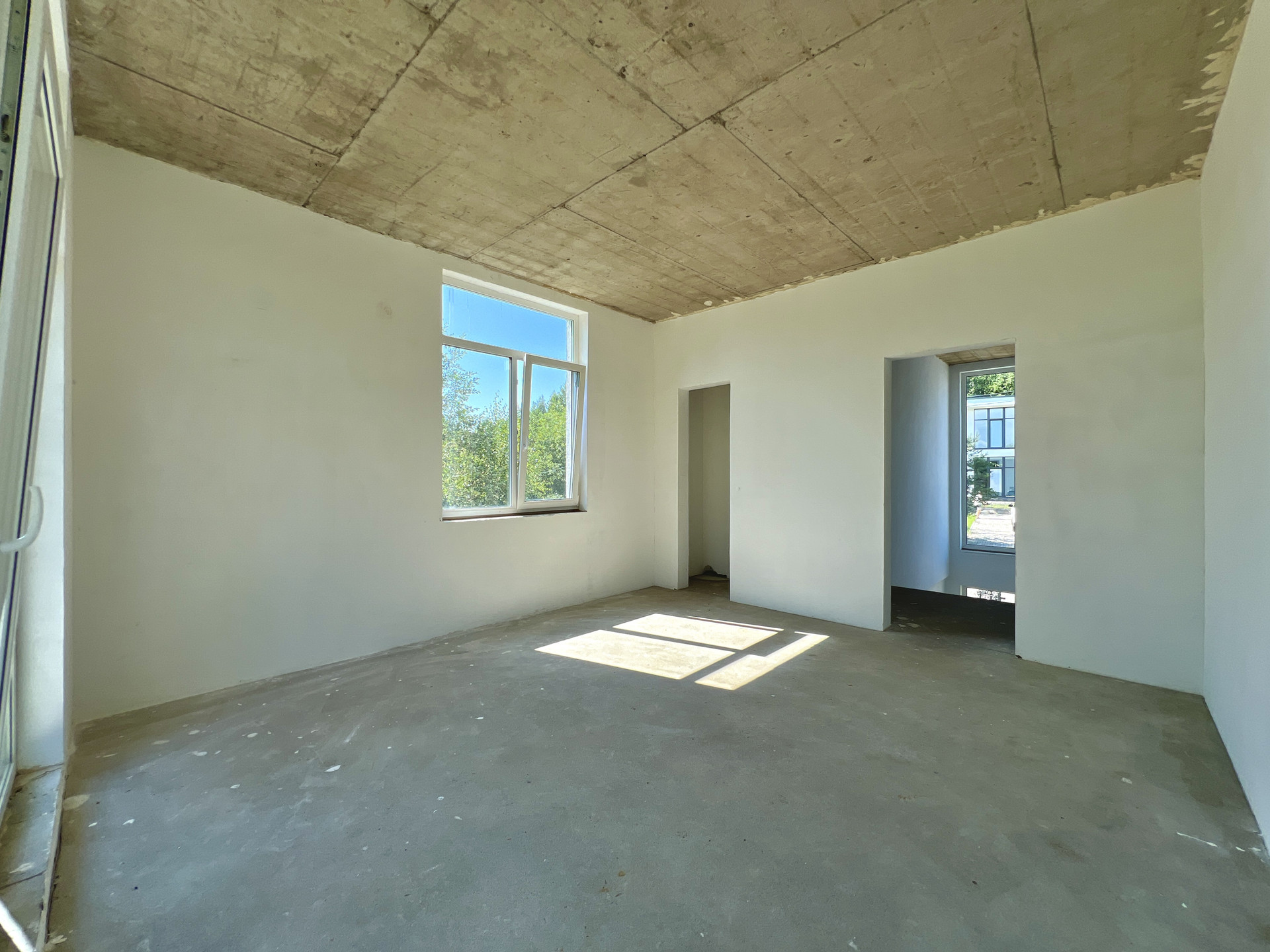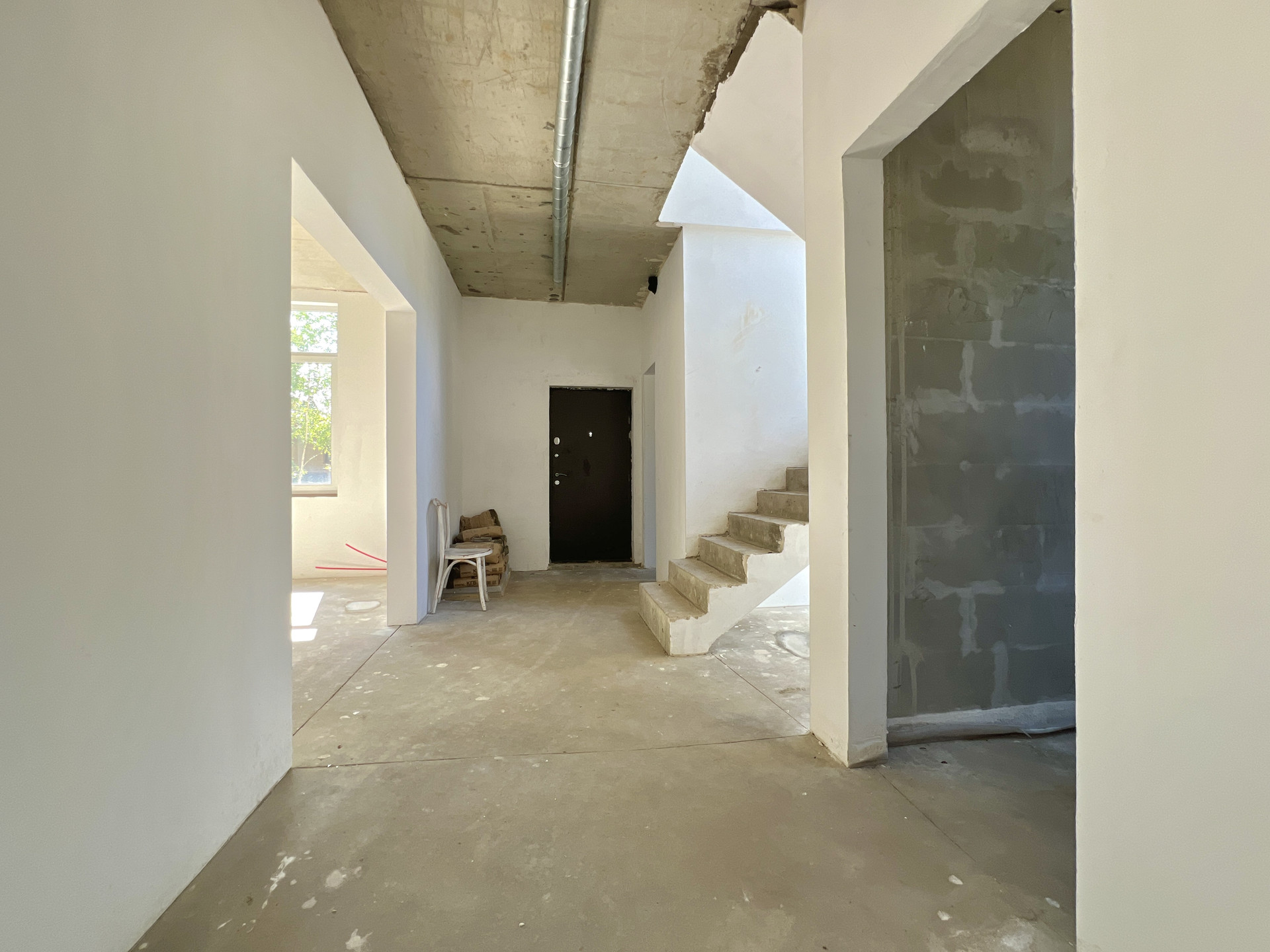 Внутренняя отделка дома черновая. Окна в доме двухкамерные пластиковые стеклопакеты. На входе установлена цельнометаллическая дверь. Крыша дома плоская, повышенной устойчивости к сильным ветрам, покрыта металлической черепицей.