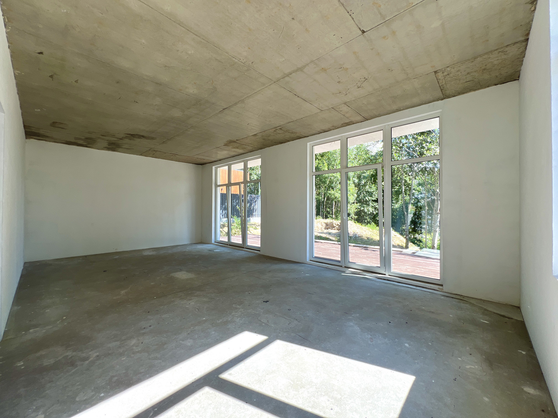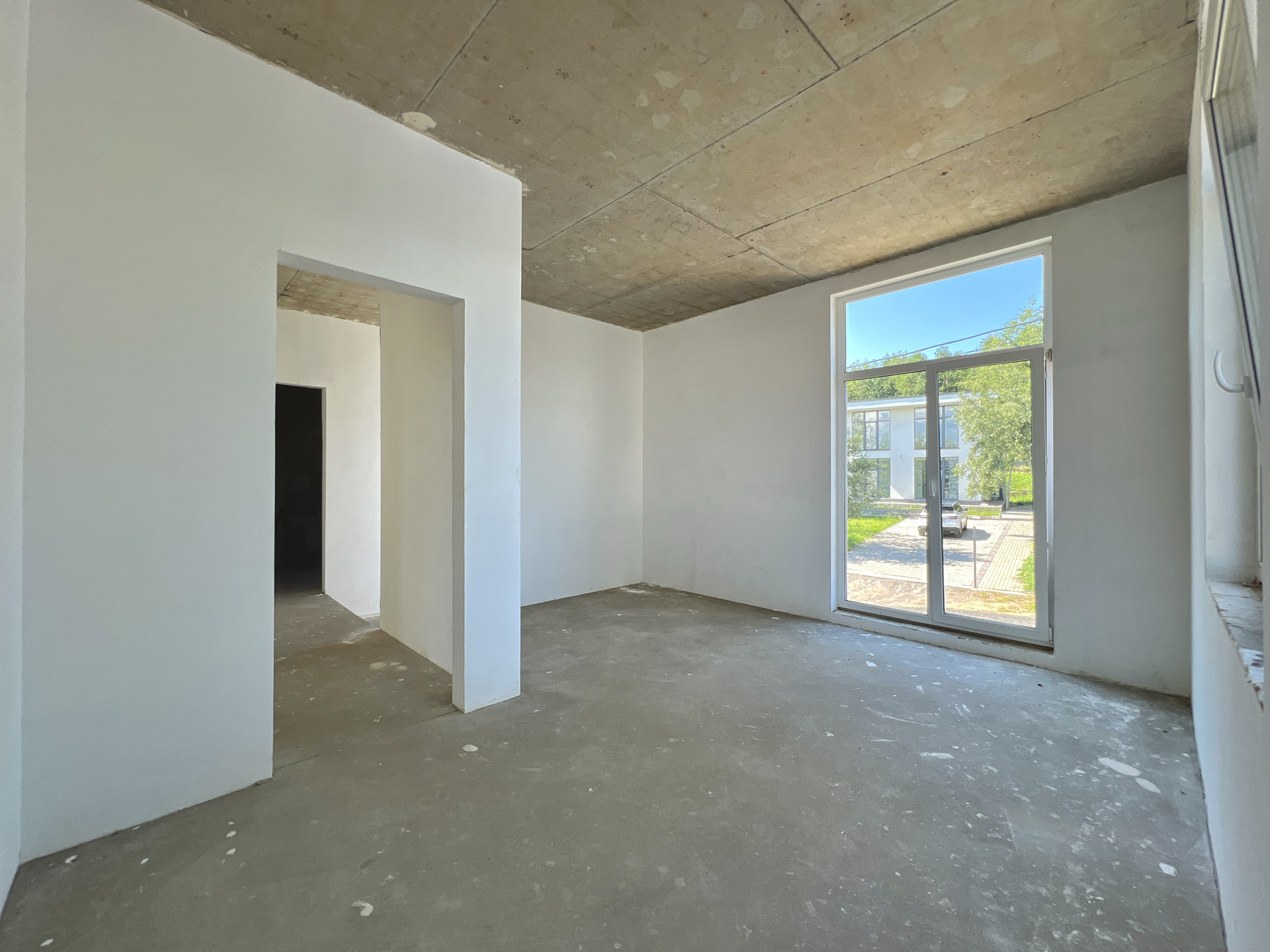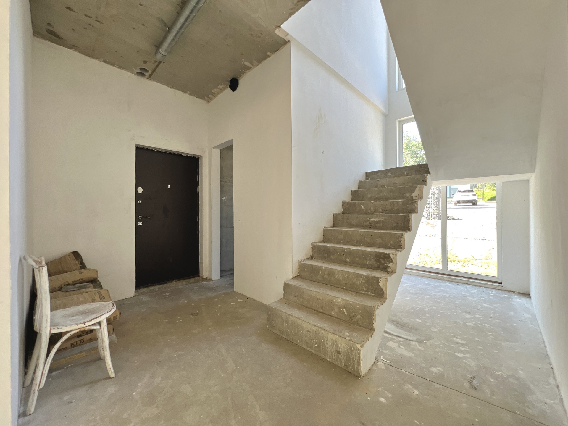 Внутренняя отделка дома черновая. Окна в доме двухкамерные пластиковые стеклопакеты. На входе установлена цельнометаллическая дверь. Крыша дома плоская, повышенной устойчивости к сильным ветрам, покрыта металлической черепицей.