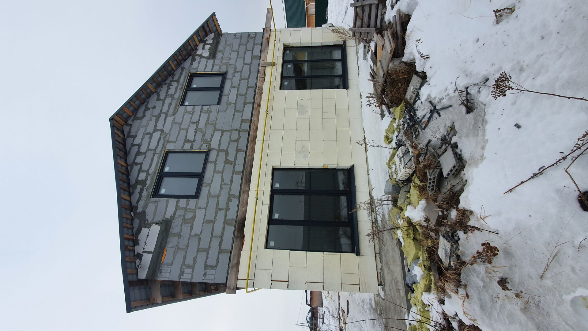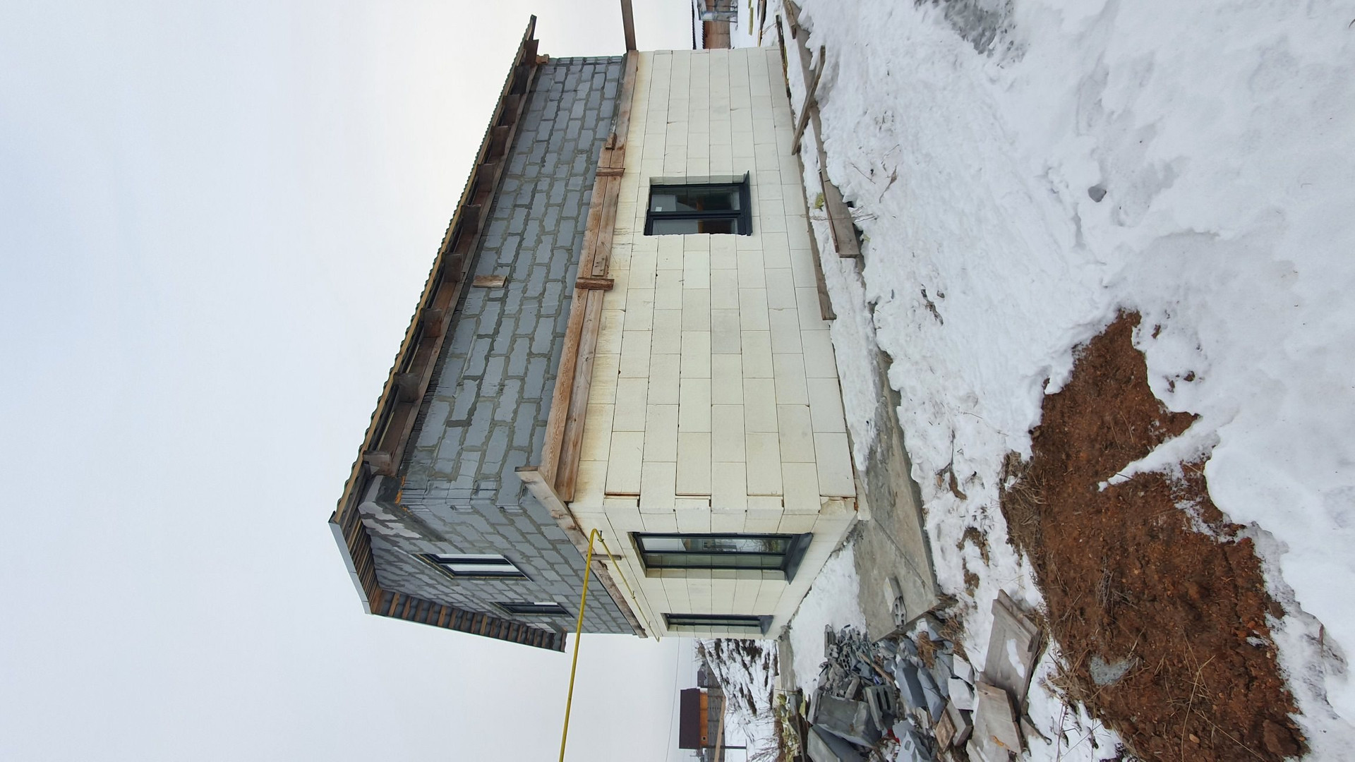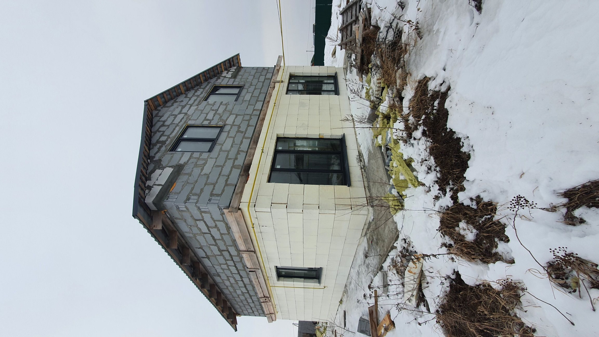 Стены первого этажа монолитные с утеплением. Стены такого дома простоят века без дополнительных затрат. Второй этаж выполнен из твинблока. В дом заведены коммуникации: электричество (15 кВт), газ (варочная поверхность и двухконтурный газовый котел на отопления и ГВС) скважина (насос глубинный в скважине, бесшумная насосная станция в доме, чистейшая вода), канализация (септик), дополнительно установлен электрокотел на отопление (9 кВт). Отопление - теплый пол. (теплоноситель-этиленгликоль). 1 этаж 64 м2 (прихожая, кухня-гостиная, санузел, котельная). 2 этаж 64 м2 (свободная планировка).
