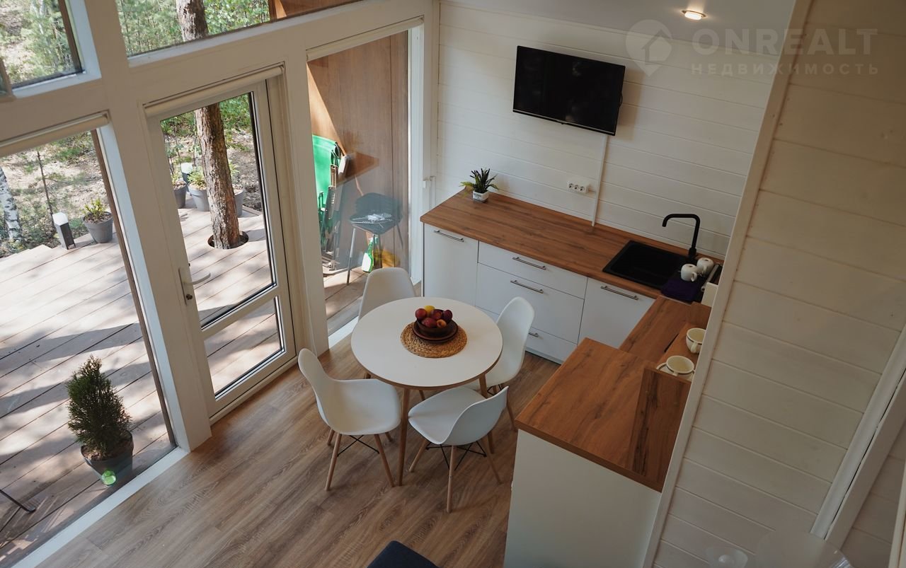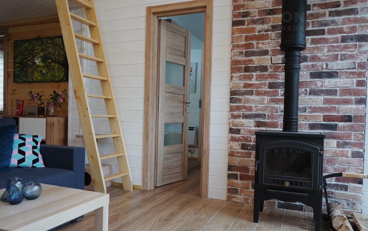 Площадь дома составляет 80 кв.м. На двух этажах есть 3 спальни, гостиная совмещенная с кухней, ванная комната с душем, и крыльцо-веранда. Дом очень теплый и светлый, подходит как для дачного отдыха, так и для круглогодичного проживания.