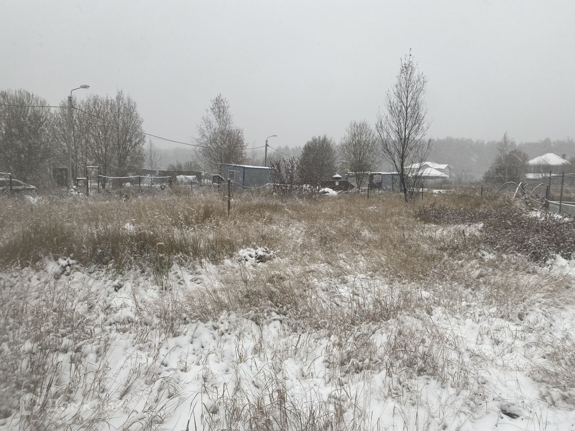 У участка правильная прямоугольная форма и площадь 9 соток, находится он у края границ поселка, что является плюсом для тех, кто хочет жить в более уединенном месте.