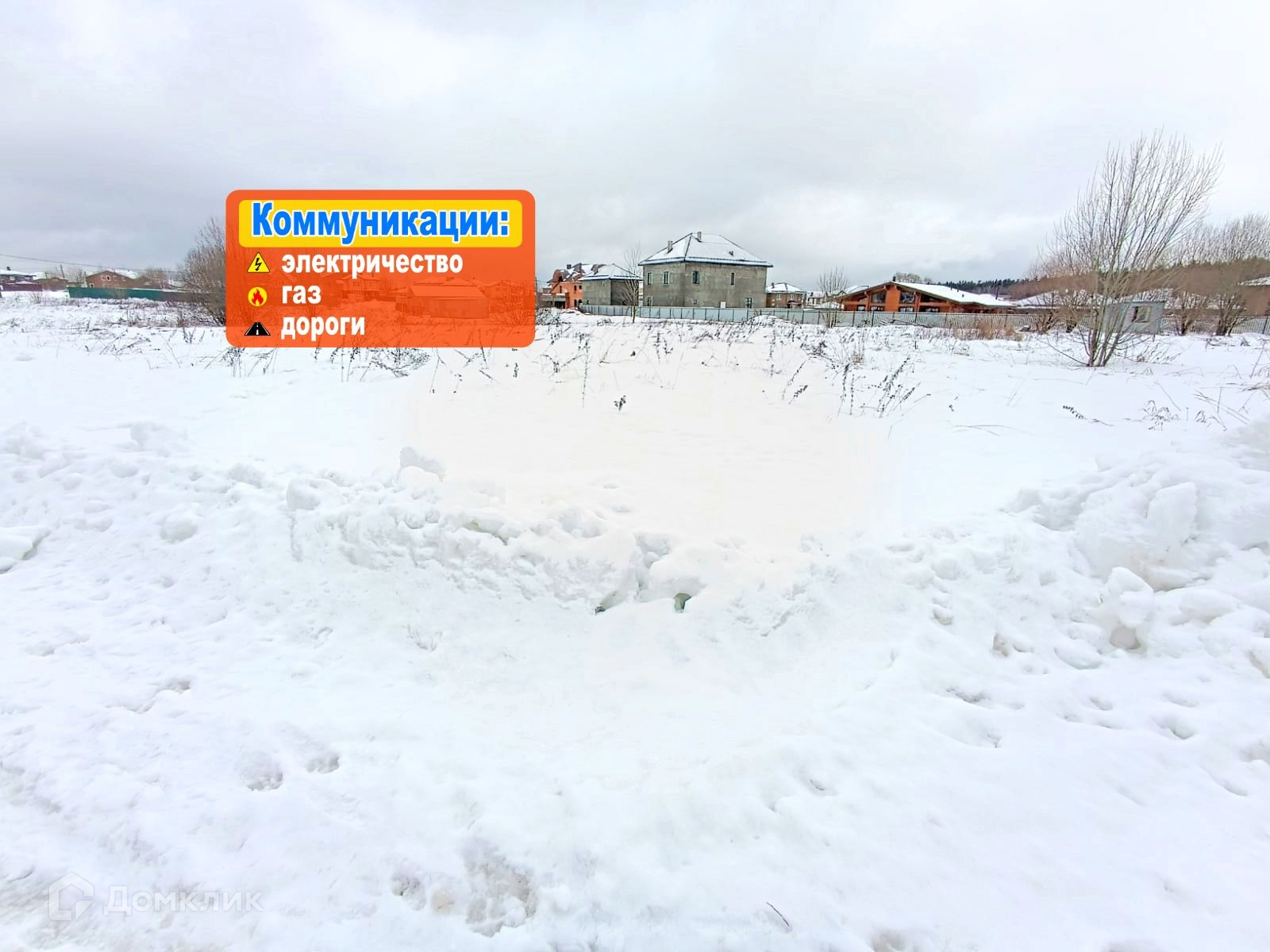 Вдоль границы участка проходят центральные коммуникации (электричество, газ) давая возможность подключения.