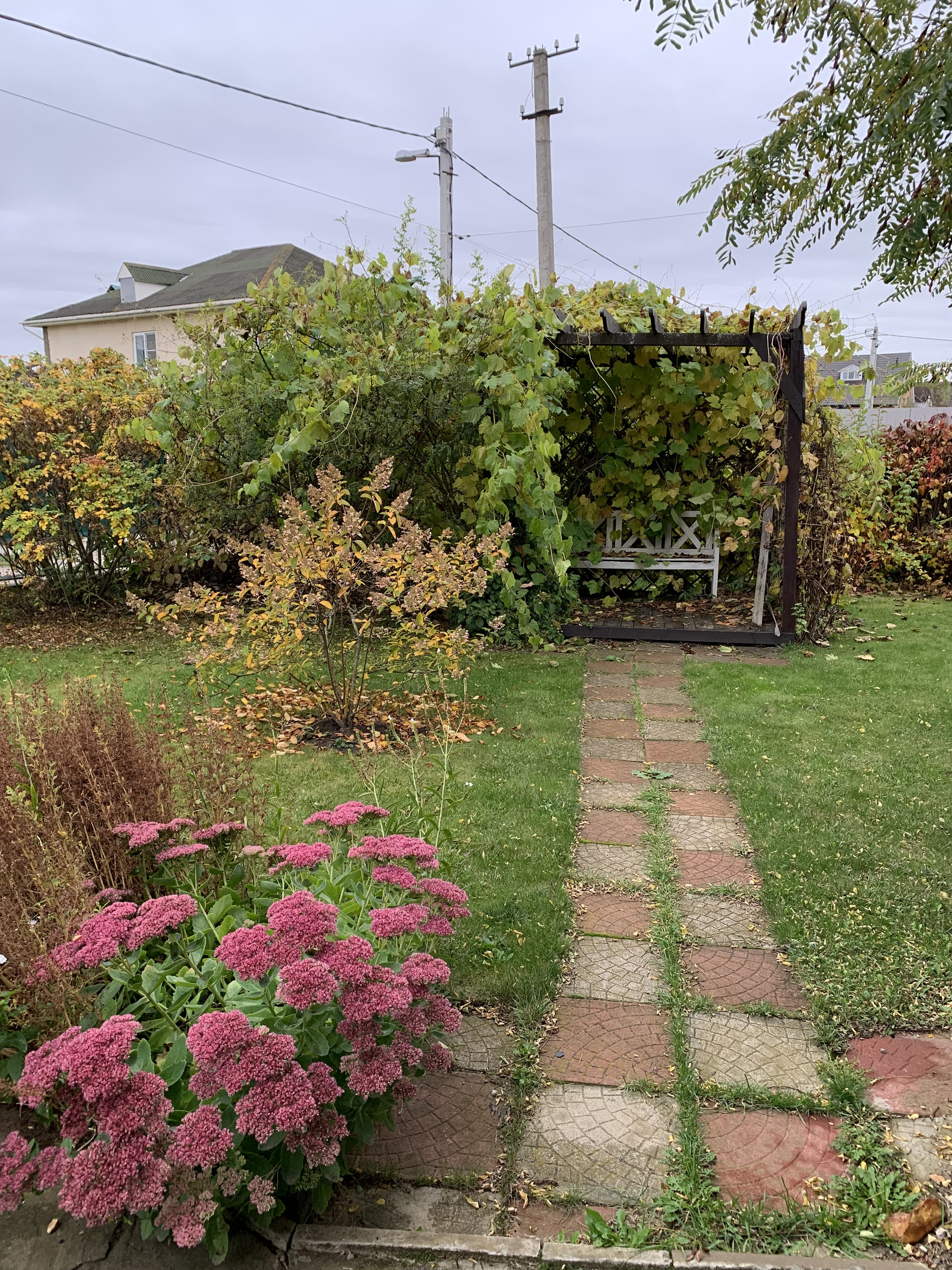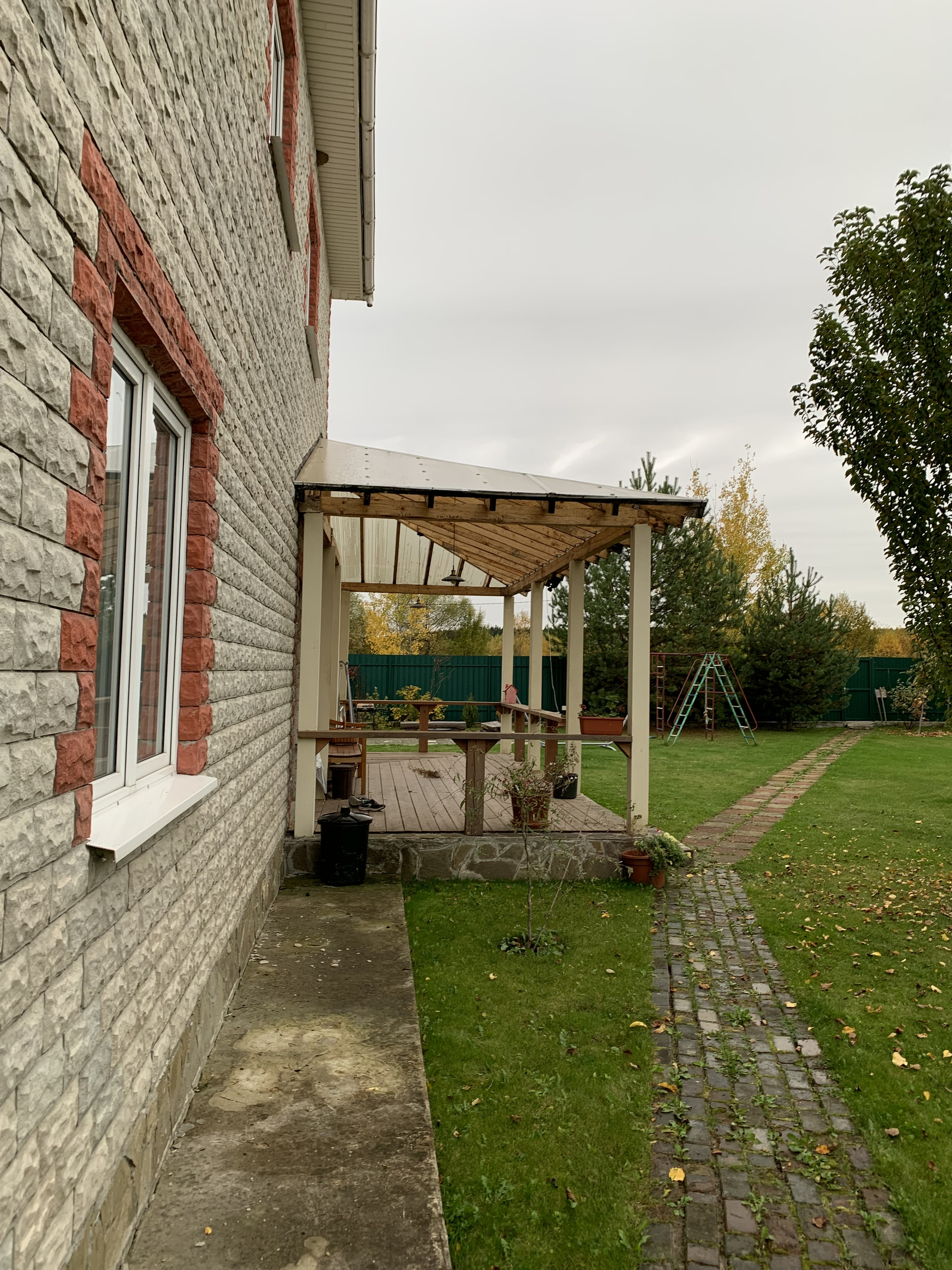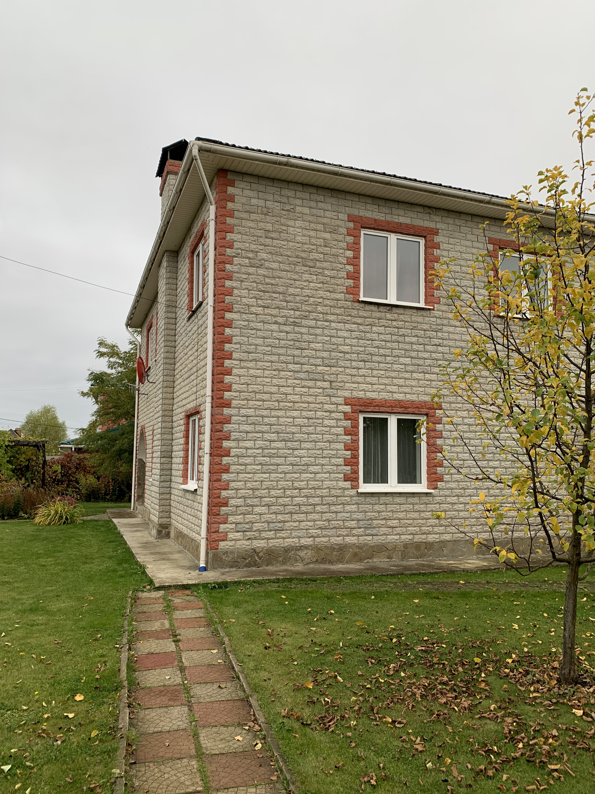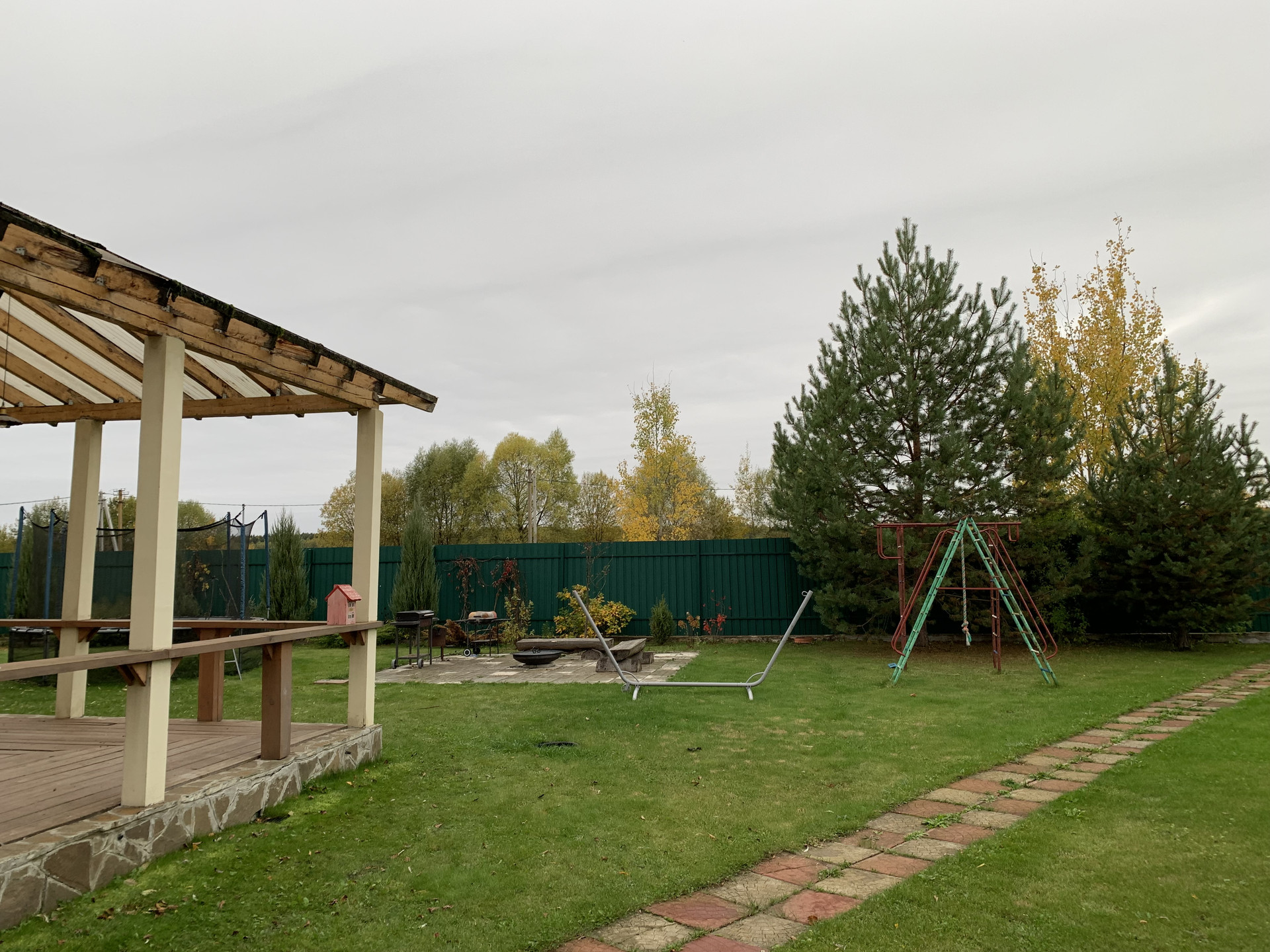 Красивый ухоженный участок, площадка для шашлыка, по участку разведен дренаж, завезен грунт, хороший газон. Взрослые деревья, растет виноград. Зелено и красиво.