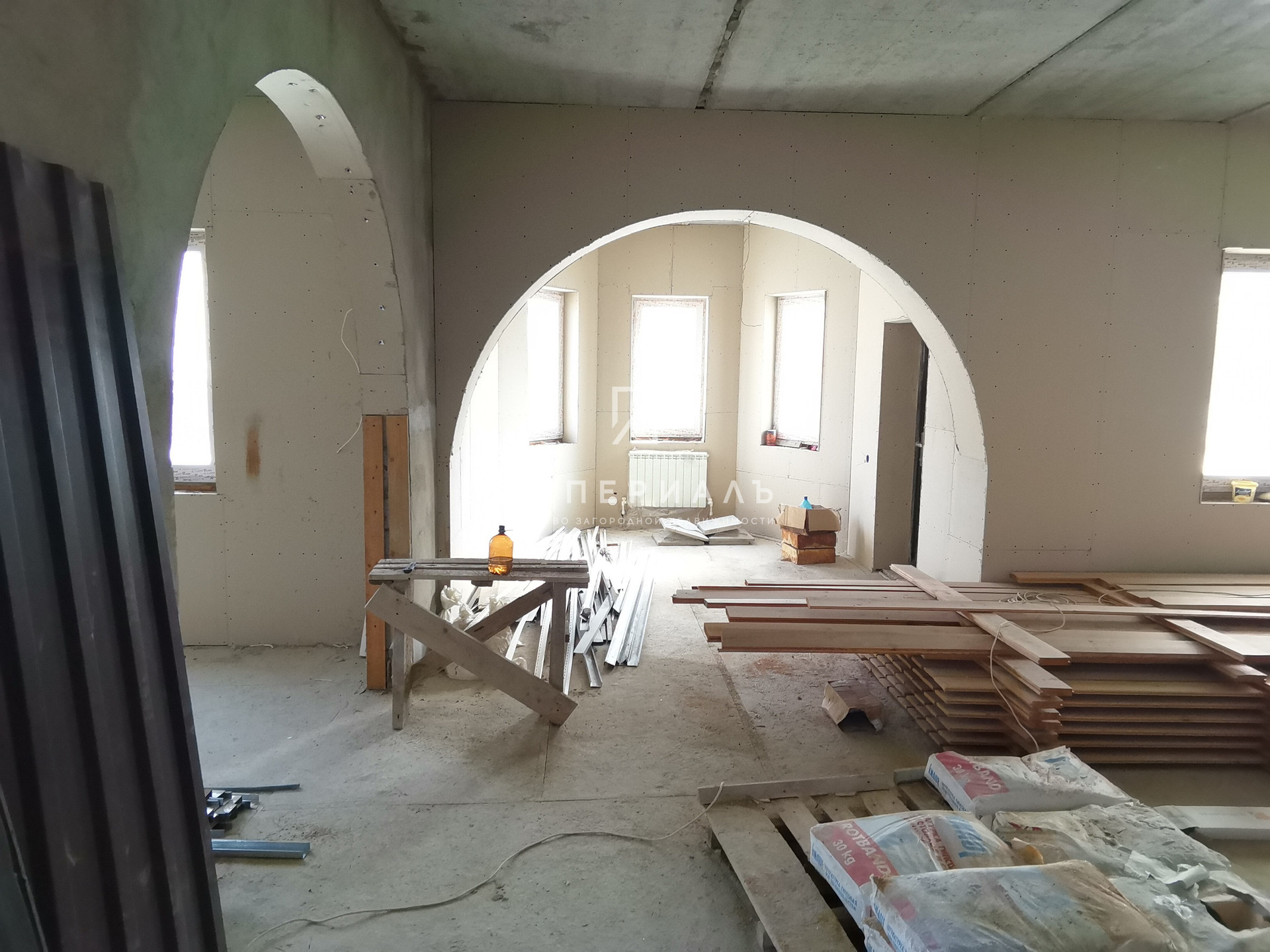 Дом: 285 кв. м., 2х этажный. Фундамент- плита. Стены- пенобетонный блок+ утеплитель+ короед. Мягкая кровля. Окна - двухкамерные стеклопакеты.