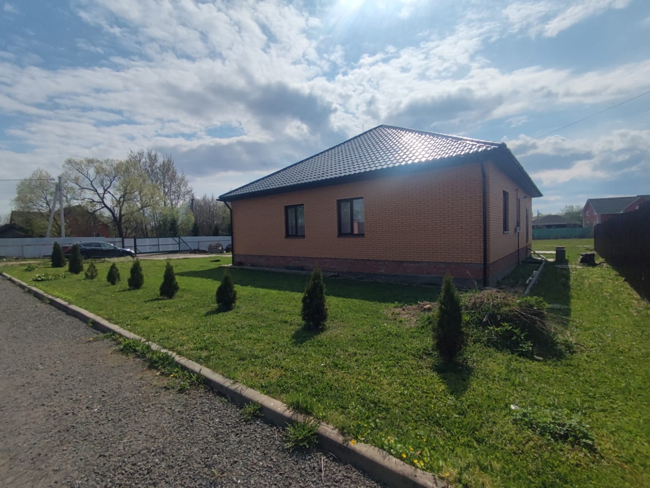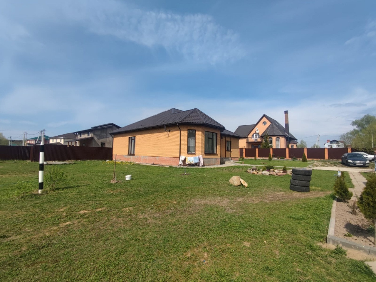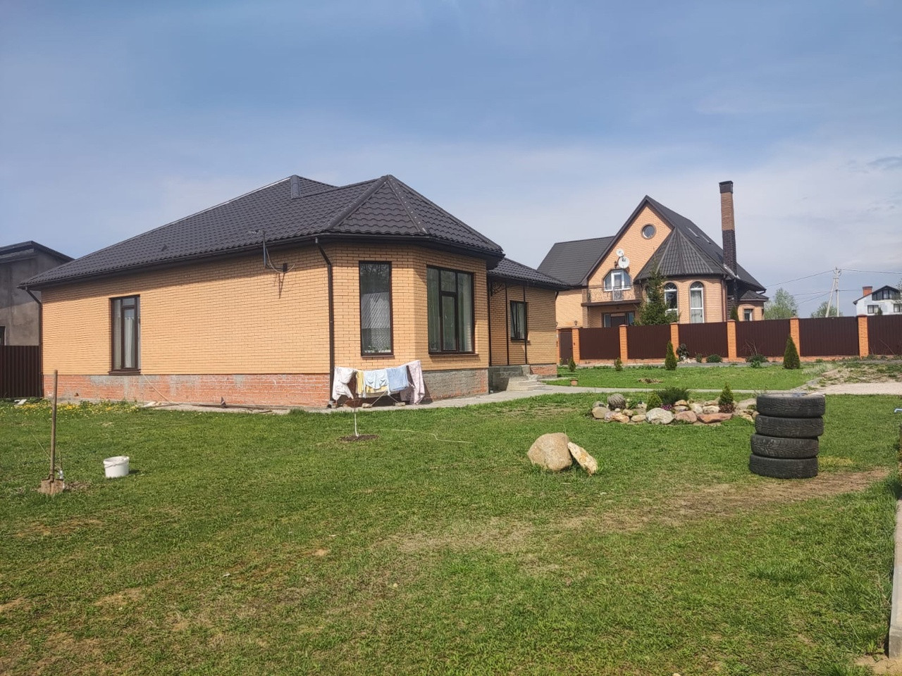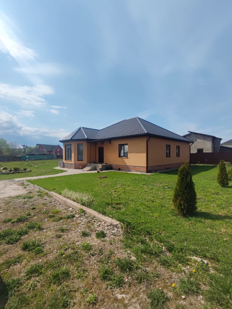 Дом для круглогодичного проживания общей площадью 158.3 кв.м. на участке 11 соток. В закрытом респектабельном коттеджном поселке "Алешкины рассветы", в 62 км от МКАД по Калужскому шоссе. Дом построен из высококачественных пенобетонных блоков на монолитном фундаменте, крыша металлочерепица. Дом одноэтажный: прихожая, холл, гостиная, кухня-столовая, 4 просторные спальни, санузел с душевой, котельная, кладовая с погребом. Дом теплый, уютный, внешний и внутренний дизайн стильный и лаконичный, панорамное остекление, несколько выходов на участок, теплый пол. Все коммуникации центральные: водоснабжение, электроснабжение, магистральный газ, канализация. Телевидение, оптоволоконный интернет. На участке 11 соток построен хоз-блок, газон, декоративные деревья, кустарник и цветы. Инфраструктура района: школа, детский сад, несколько магазинов в шаговой доступности, лес, река, заповедник. Маршрут Автобуса до метро в Москве. До автобусной остановки 5-7 минут пешком.