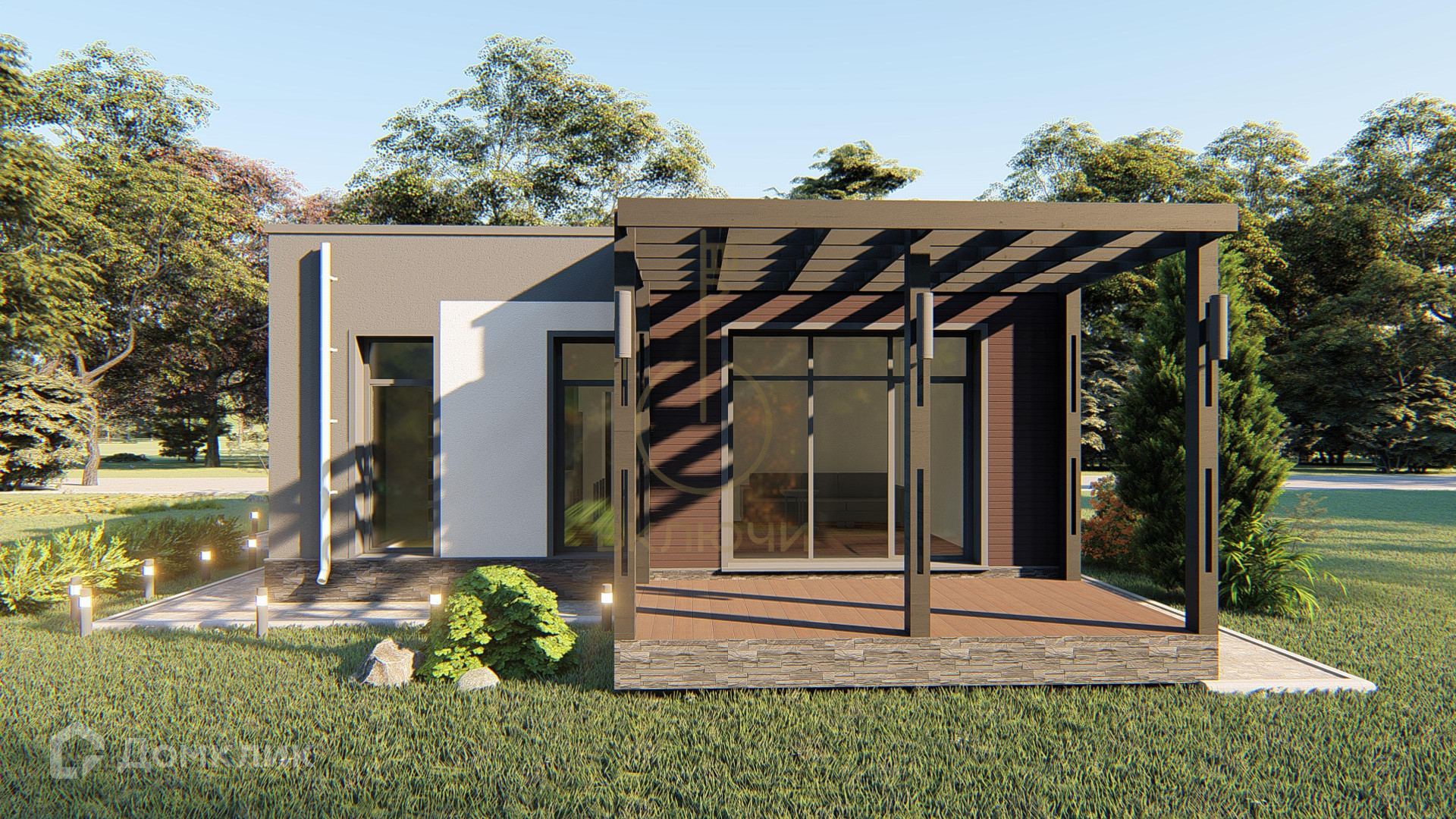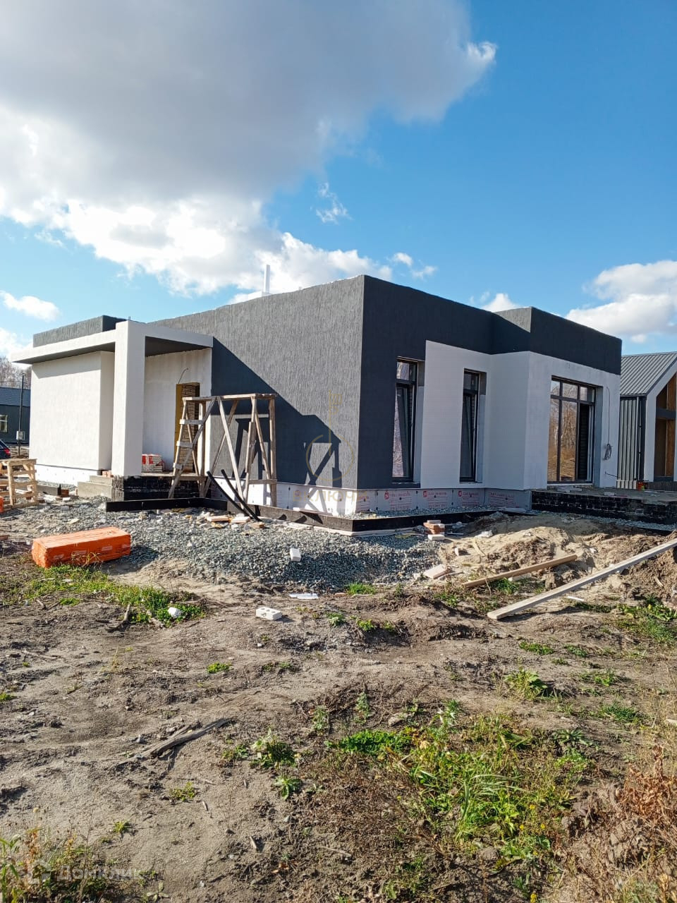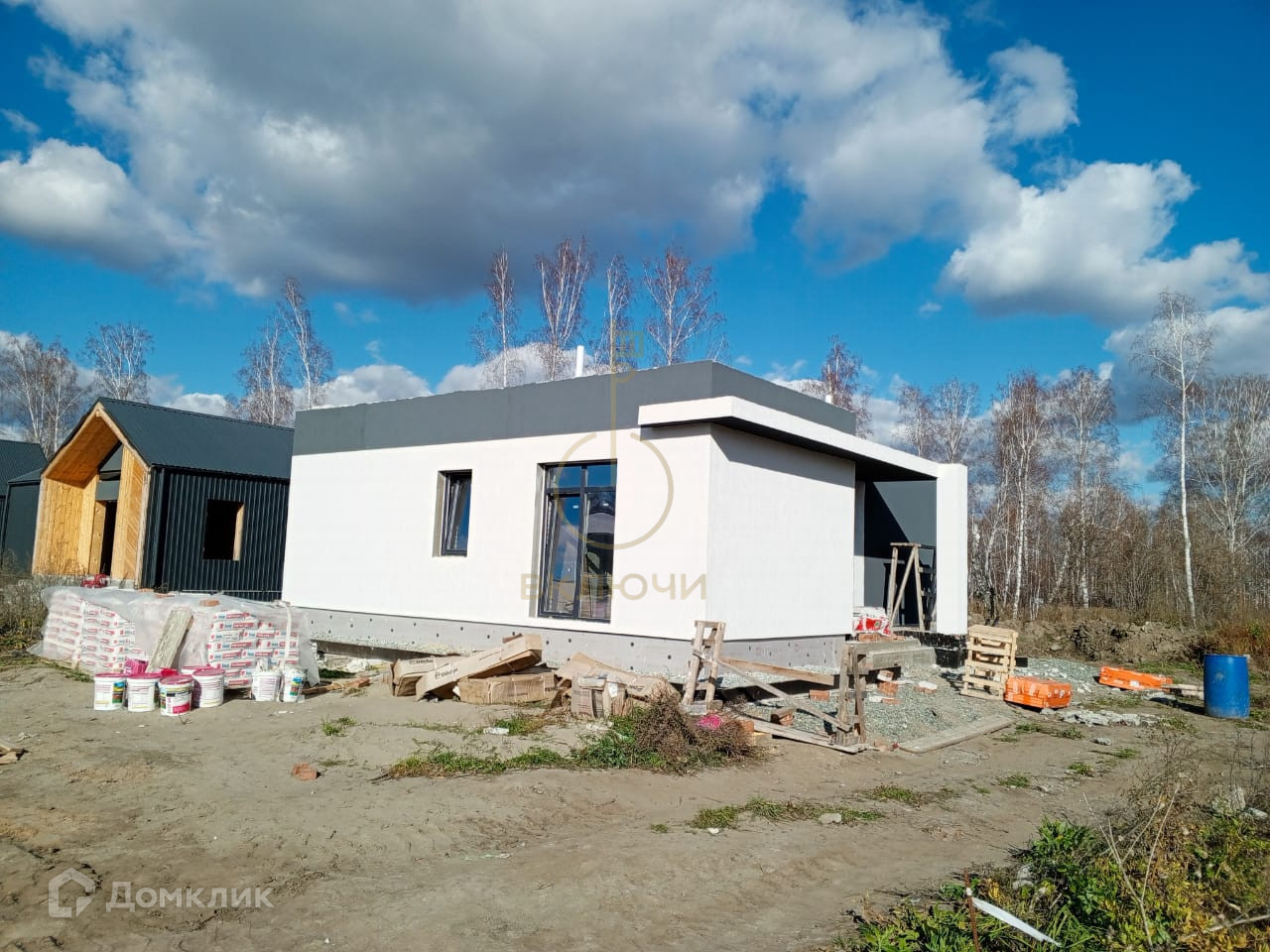 А так же дверь с терморазрывом, утепленная крыша с огне и биозащитой, остекление всего дома, водосточная система, подшив свесов и карнизов, закладные под коммуникации, водяной теплый пол, чистовая стяжка на полу, разводка коммуникаций под землей(газ, вода, электричество), электрический котел, оштукатуренные стены, перед каждым домом газон от застройщика, плюс заборы 1,5 метра в одном стиле.