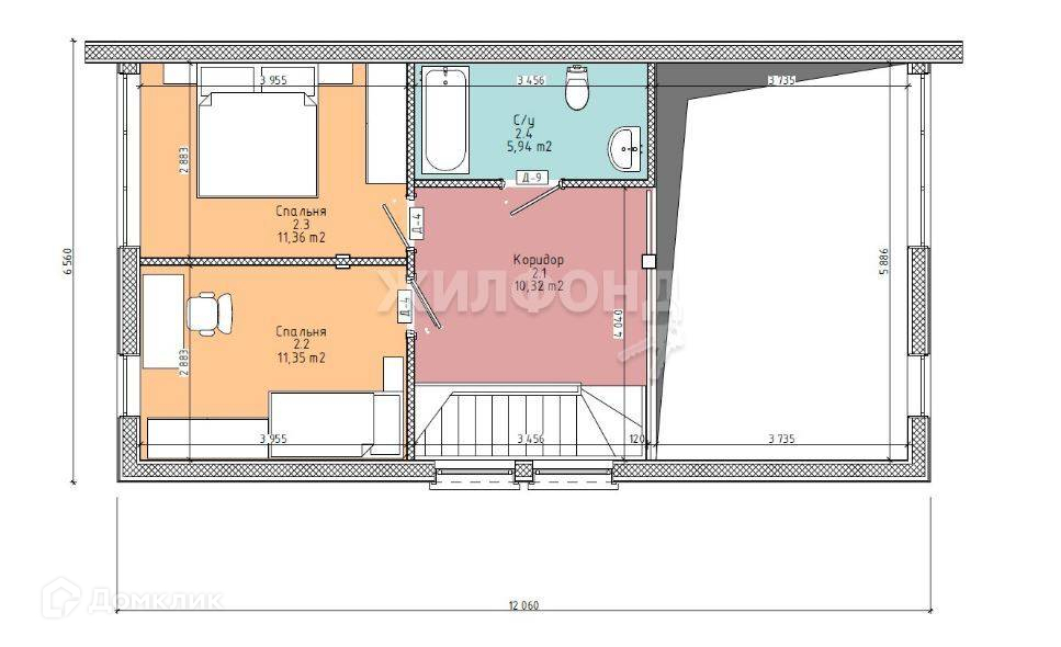 Количество санузлов - 2 (5,94 м2 и 3,43 м2)