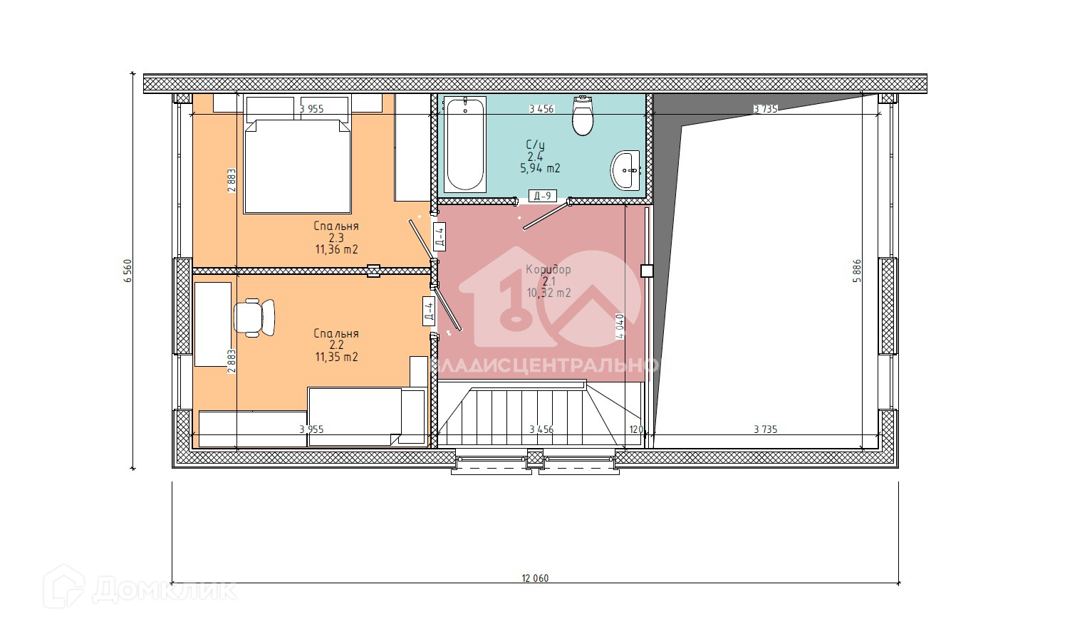 - Второй этаж: коридор, 2 спальные комнаты, санузел, второй свет(22 кв м).