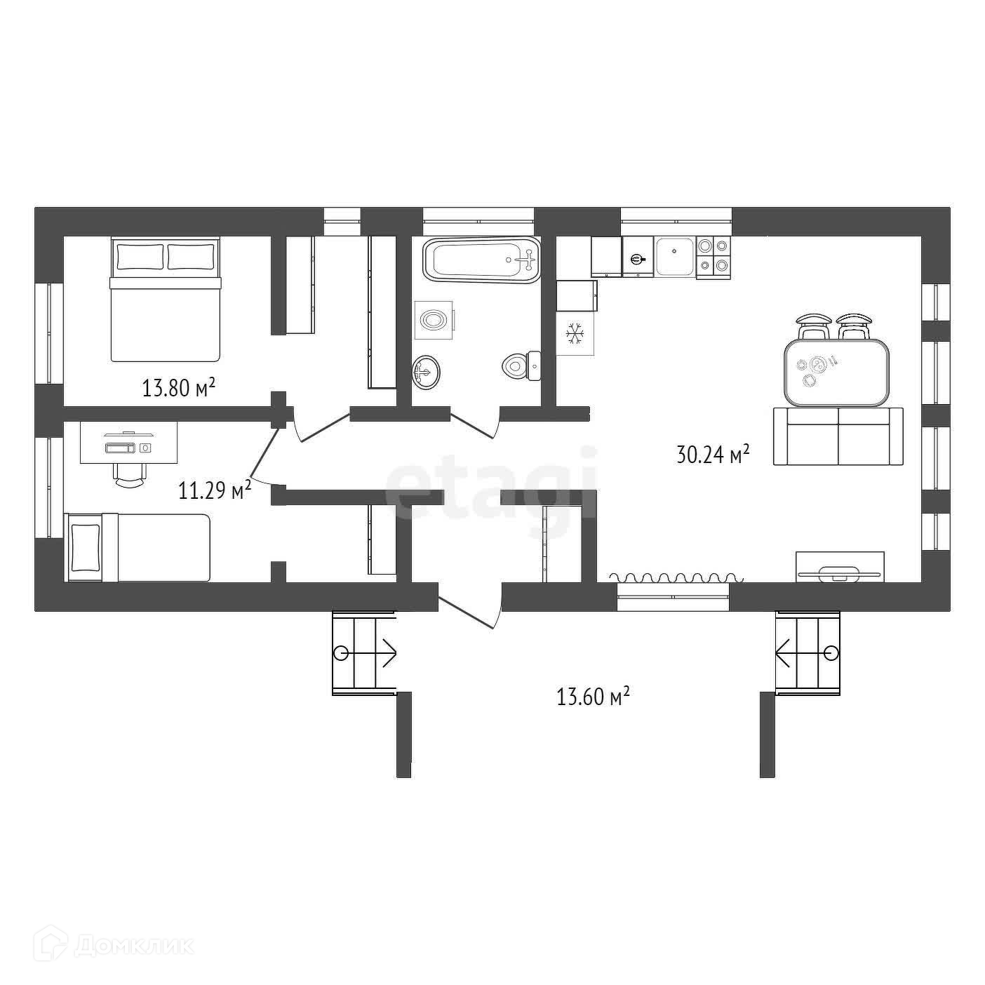 Общая площадь 76 м2