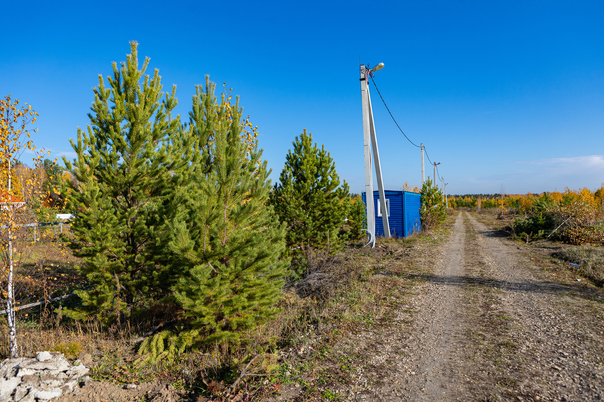 Во-первых, это центральная часть территории. Здесь молодая поросль сосен уже достигает 3-4 метров, а за год вырастет уже в полноценный молодой лес. Деревья такой высоты удобно спиливать при расчистке своего участка или оставлять для ландшафтного дизайна. Опять же у соседей ровно такая же поросль, а значит, и соседское окружение будет с достаточно прореженным лесом.