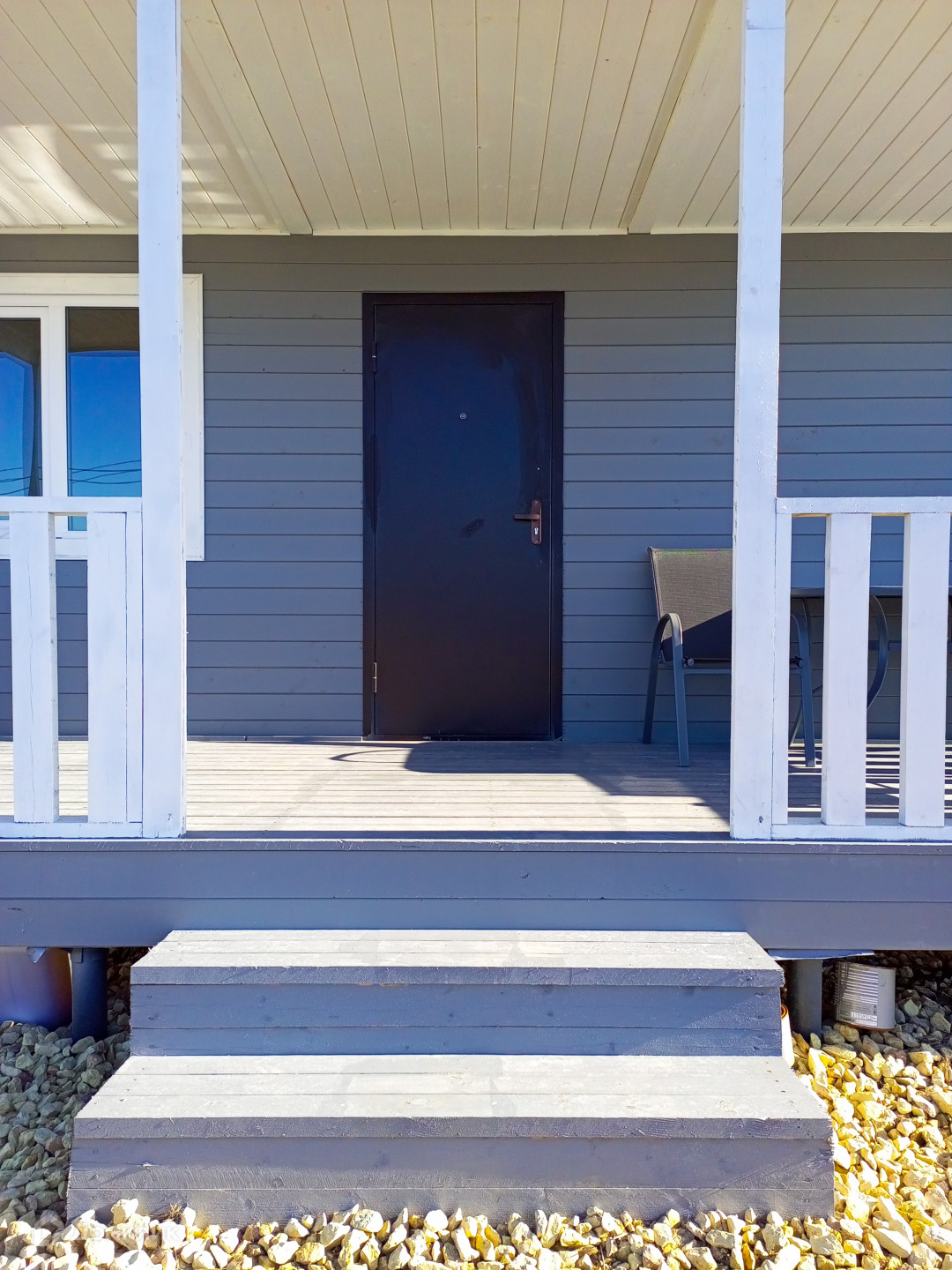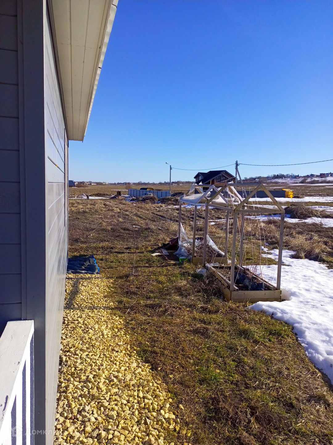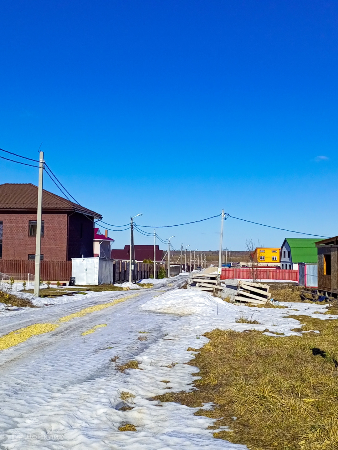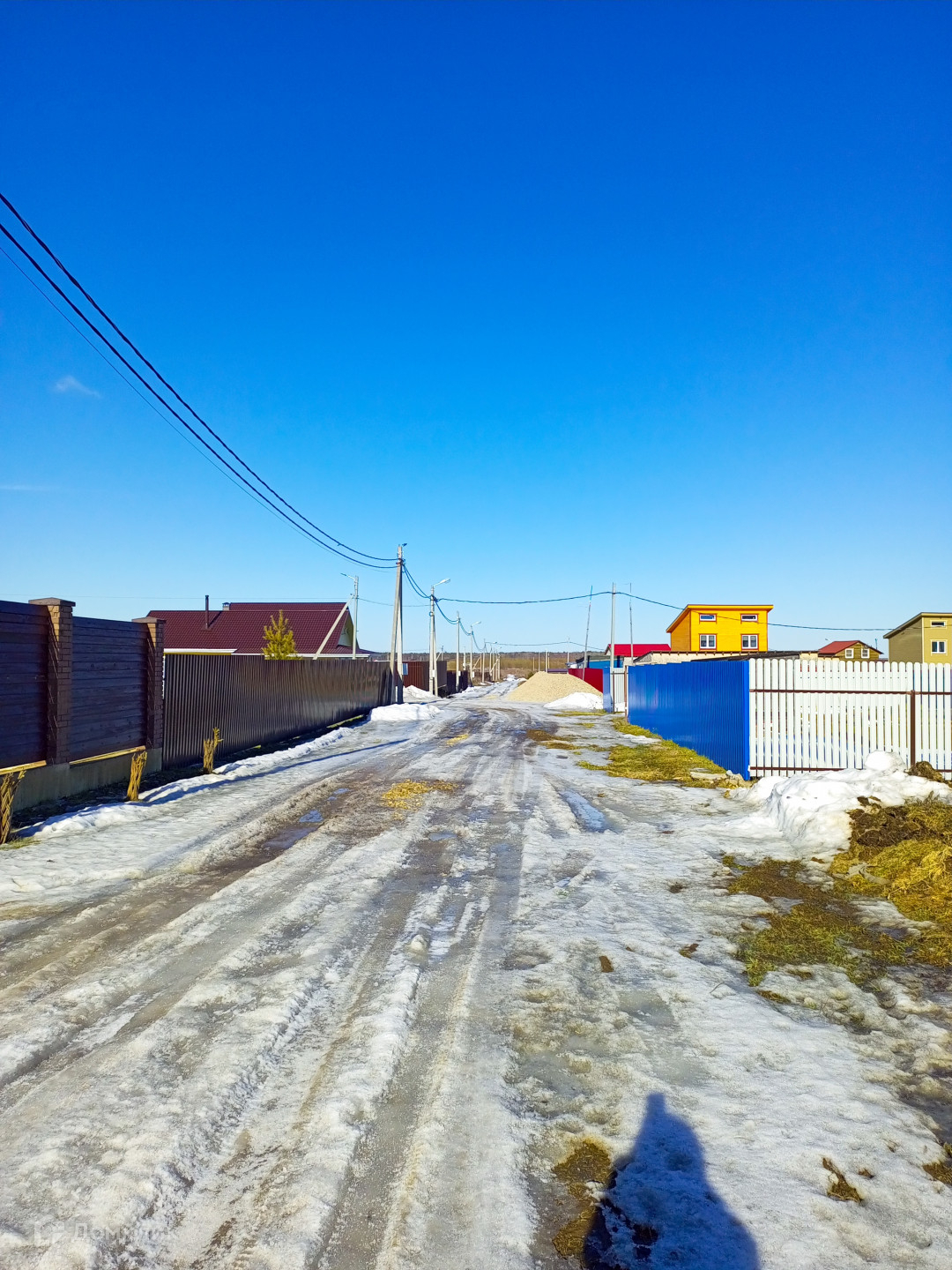 Подъездная дорога сделана, щебень. Зимой убирают снег.