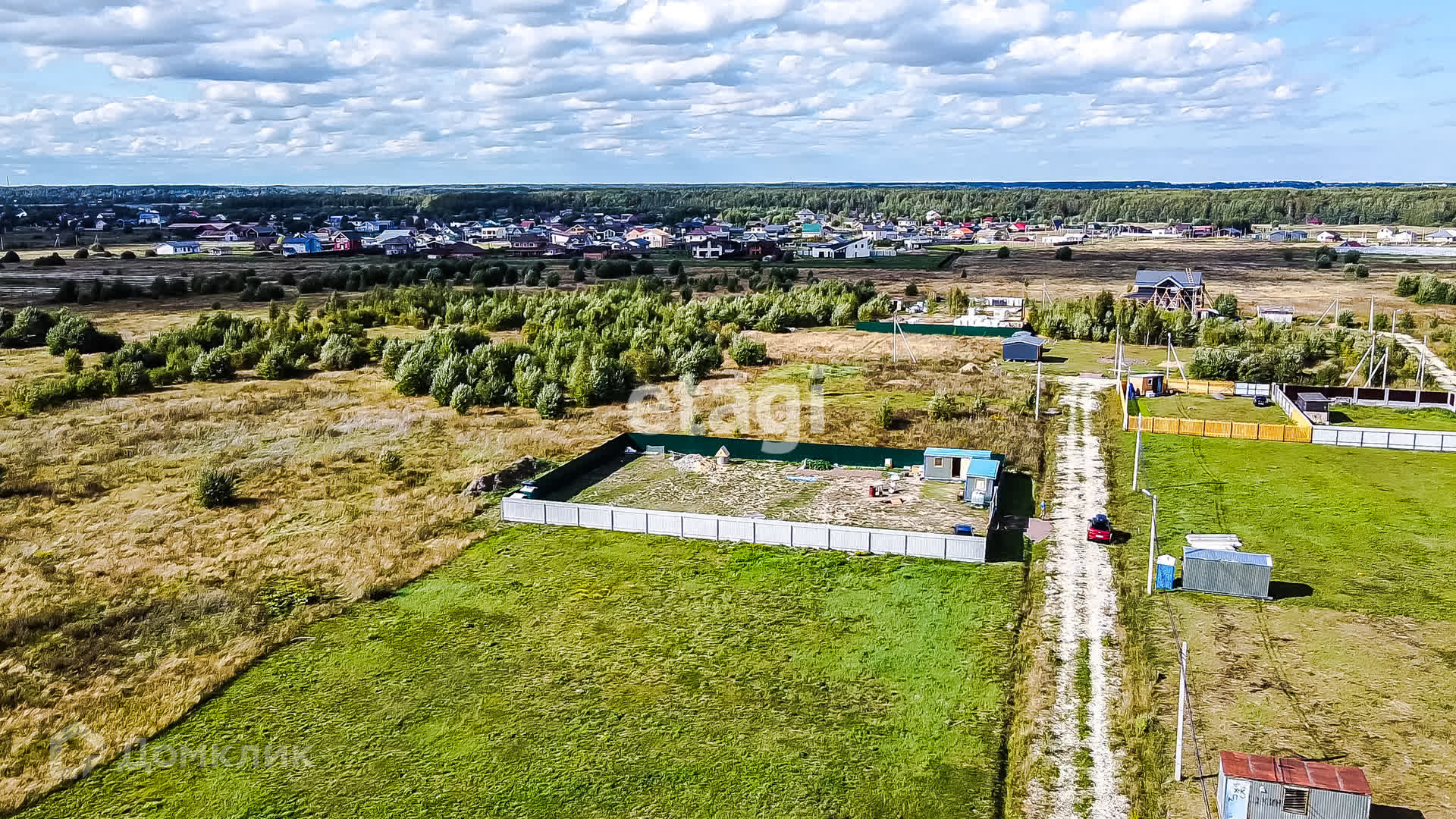 На машине от КАД к посёлку 10 минут. Вокруг поля, отличный вид. Посёлок огорожен, имеется охрана.