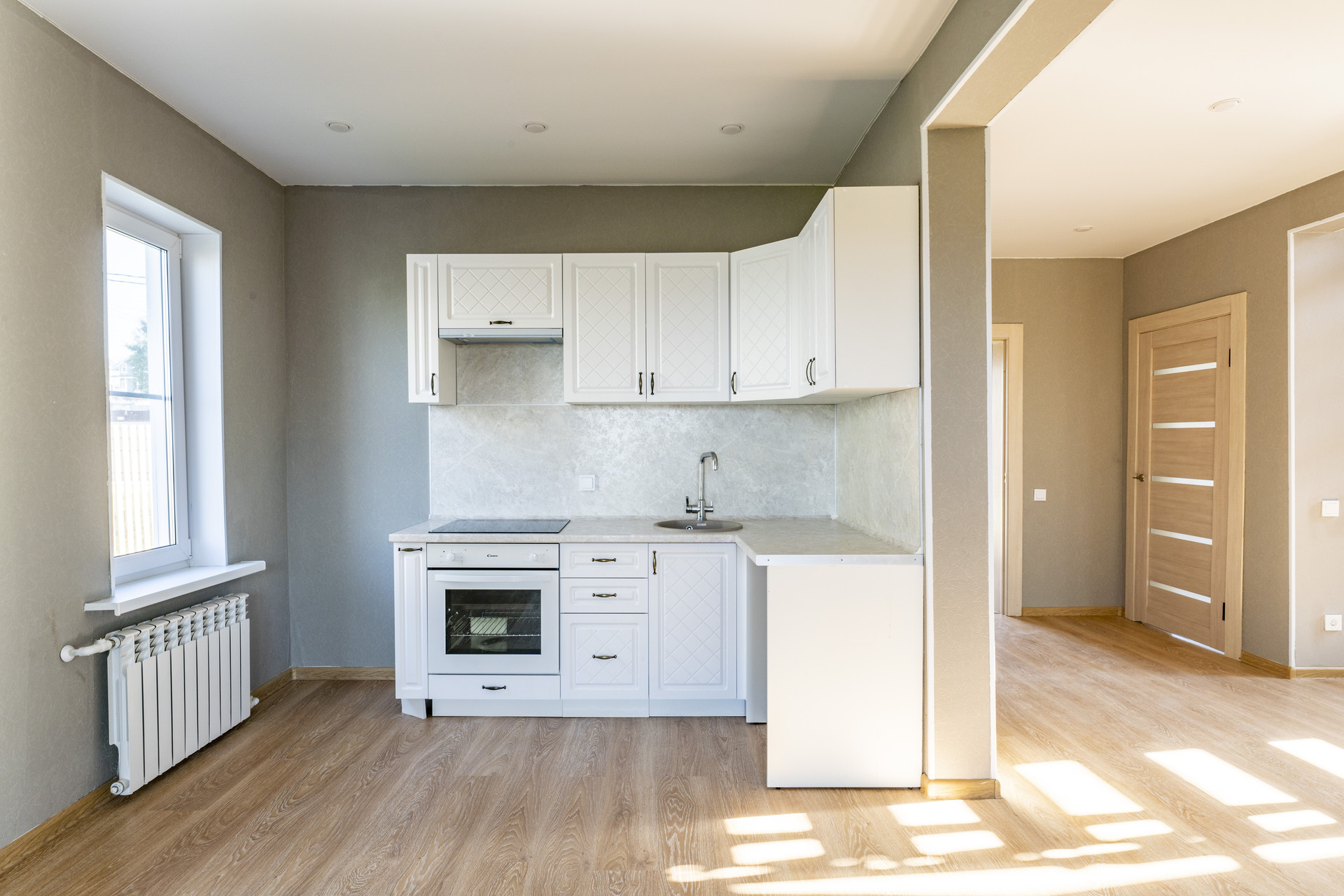 • полностью оборудованная кухня с встроенной варочной панелью и встроенным духовым шкафом