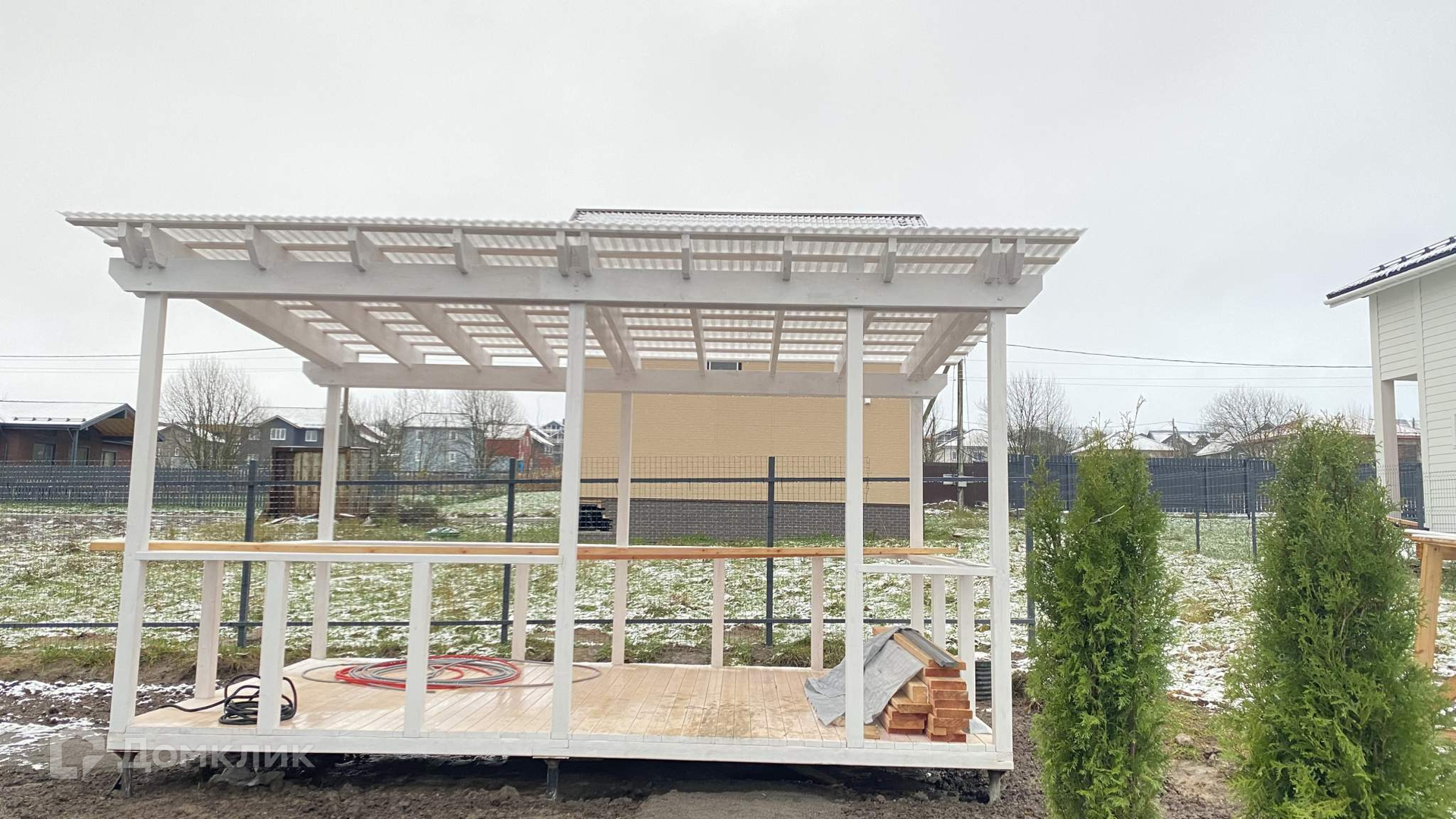 дренаж по всему периметру дома и участка, вывезен весь грунт: глина, произведены ландшафтные дорогостоящие работы: дорожки щебень с отсыпкой, благоустроена парковка на 2 автомобиля, построена беседка 15 кв. м., высажены 15 дорогих туй и 2 голубые пушистые елки вид из окна кухни гостиной. Территория освещается ночью большим фонарем со столба.
