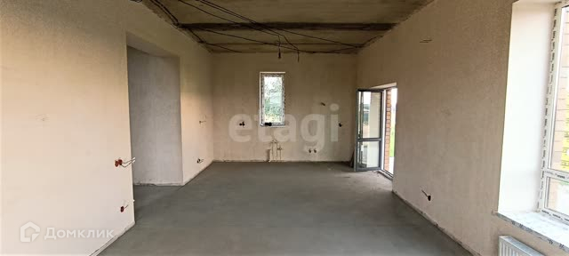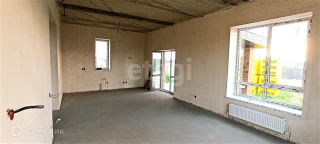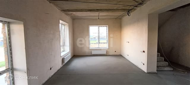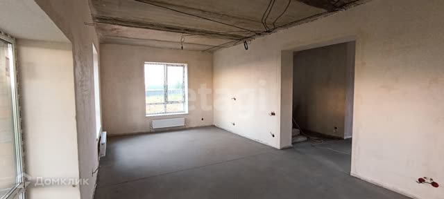 Выполнена предчистовая отделка- стяжка пола,стены отштукатурены, коммуникации разведены(электричество, водоснабжение, отопление, канализация, теплые полы по всему дому)