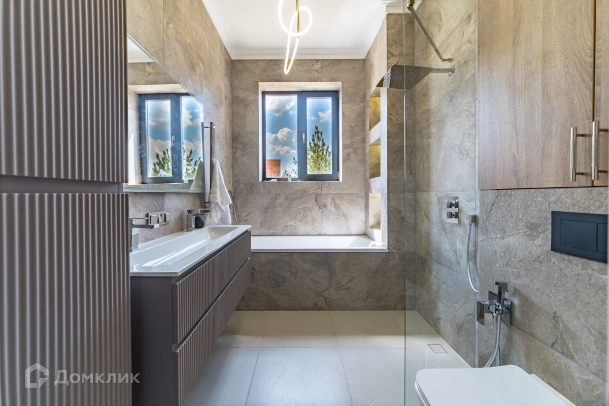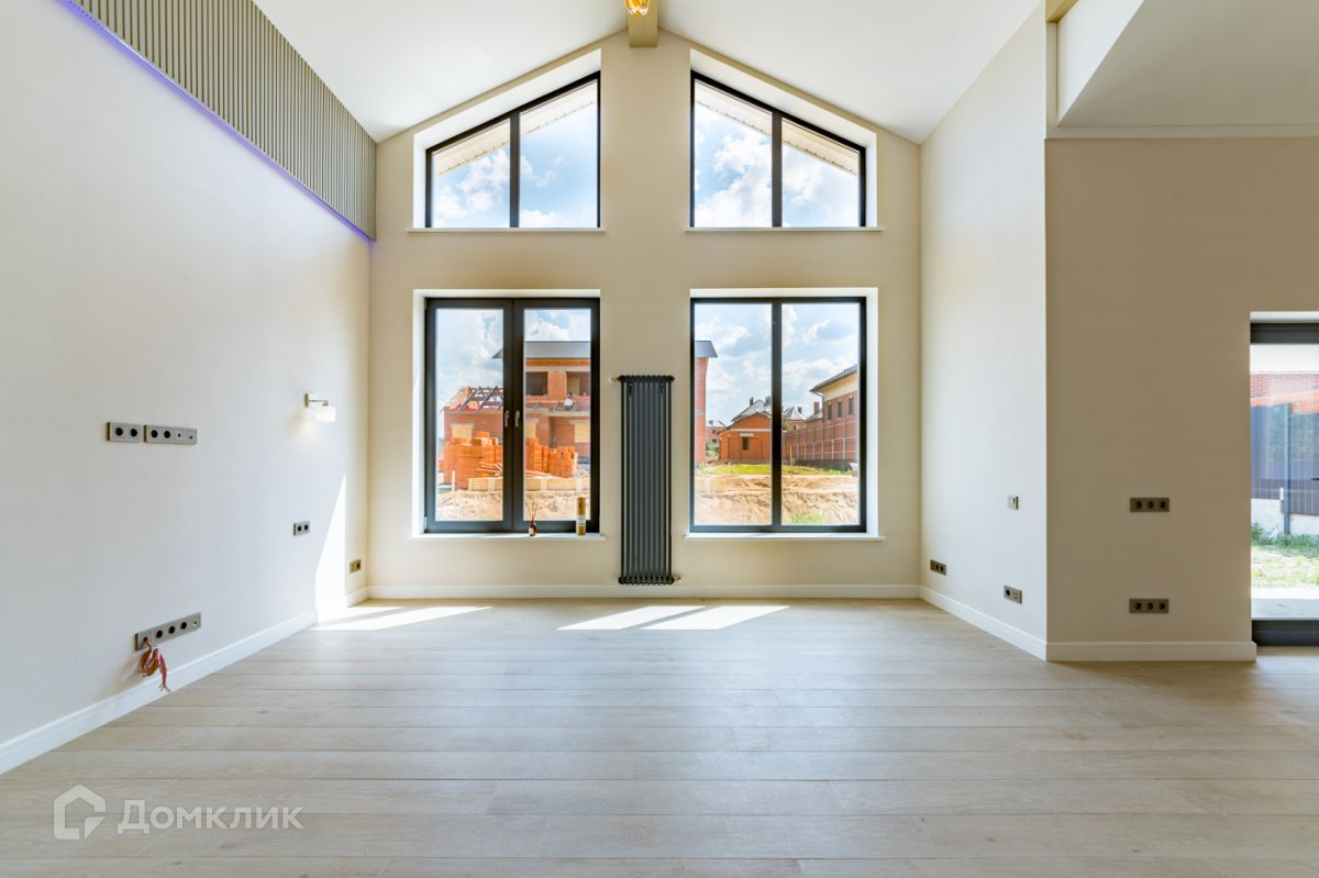 Светлый дом с высокими потолками, которые реализованы за счет второго света. В доме большая мастер спальня со своим санузлом, еще отдельные две спальни. Два санузла в доме.
