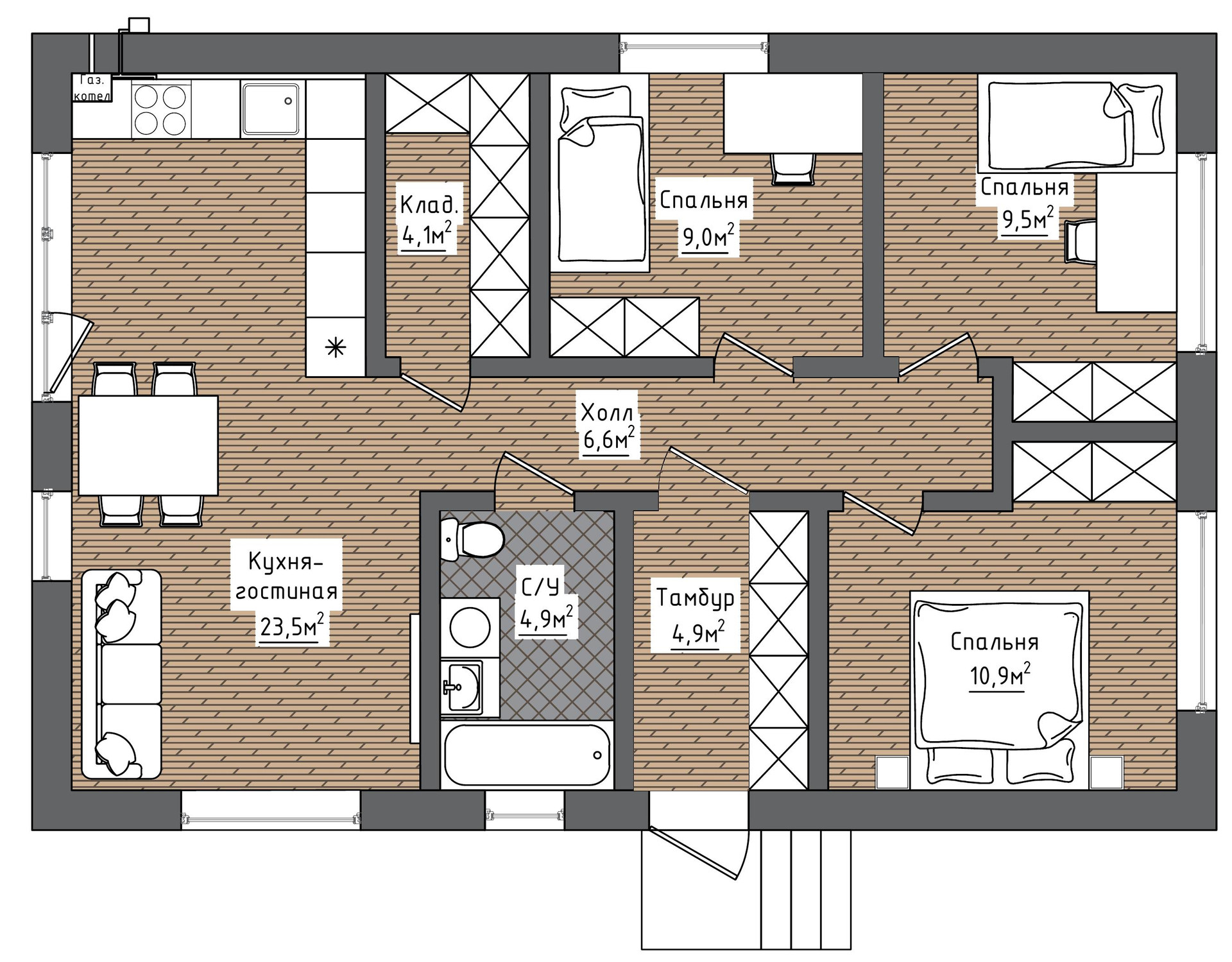 Общая площадь 80 м2