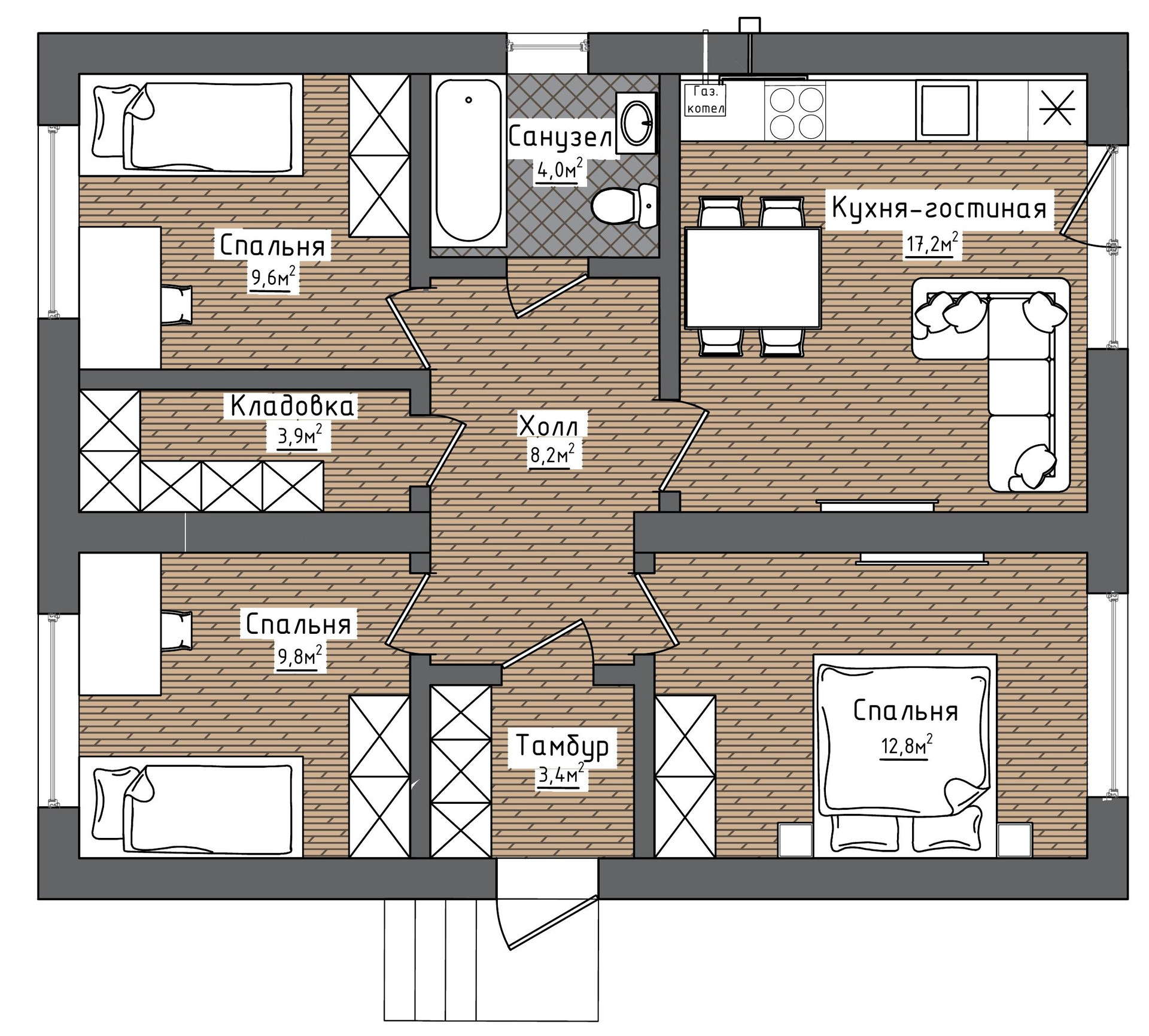 Общая площадь 76 м2