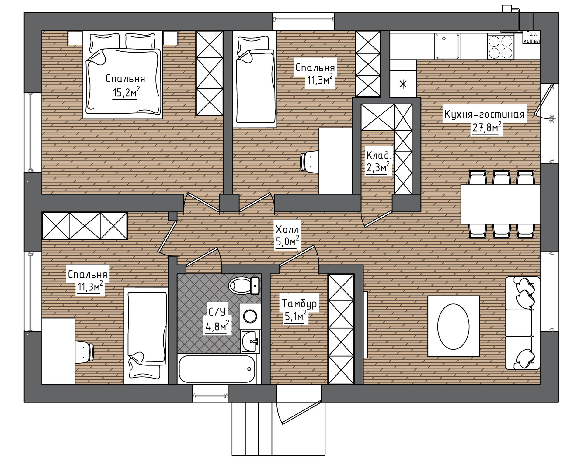 Общая площадь 90 м2