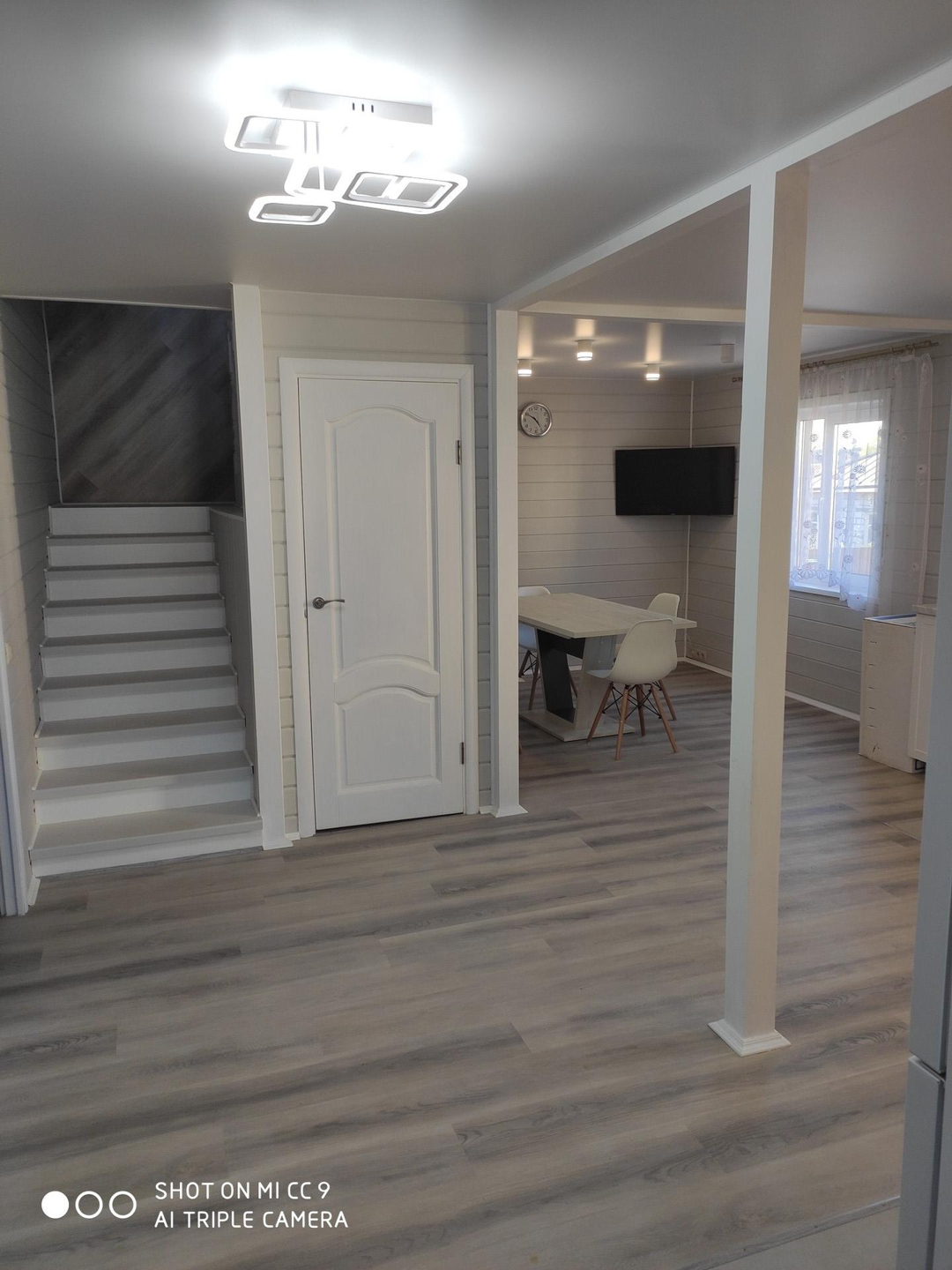 На первом этаже просторная кухня- гостиная 27 метров,спальня для гостей,санузел с ванной,кладовка,встроенная гордеробная,на втором этаже расположены 2 уютные спальни с санузлом ,душевой кабиной.