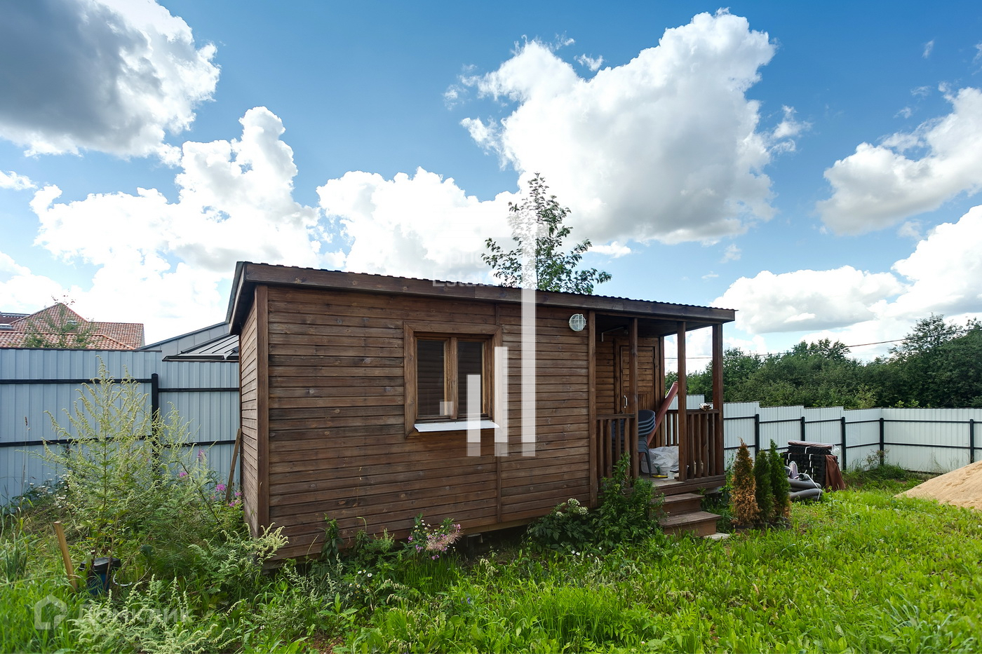 На участке стоит крепкая бытовка, парник.