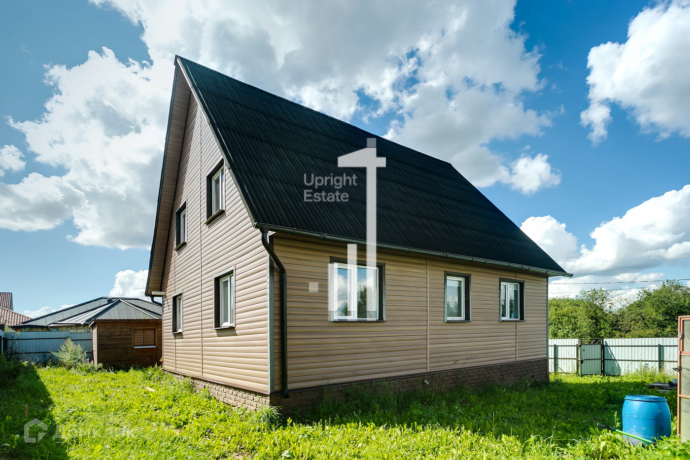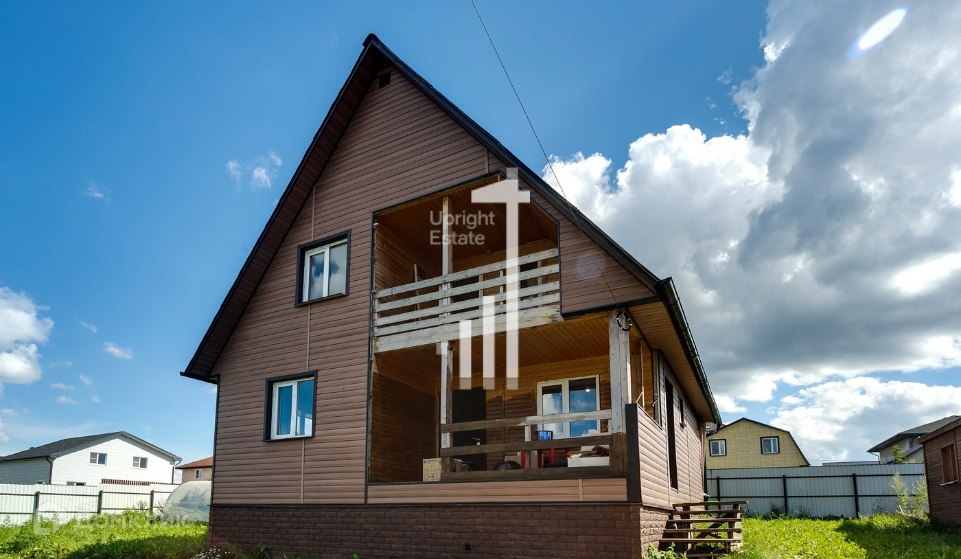 Дом выполнен по каркасной технологии, обшит сайдингом.