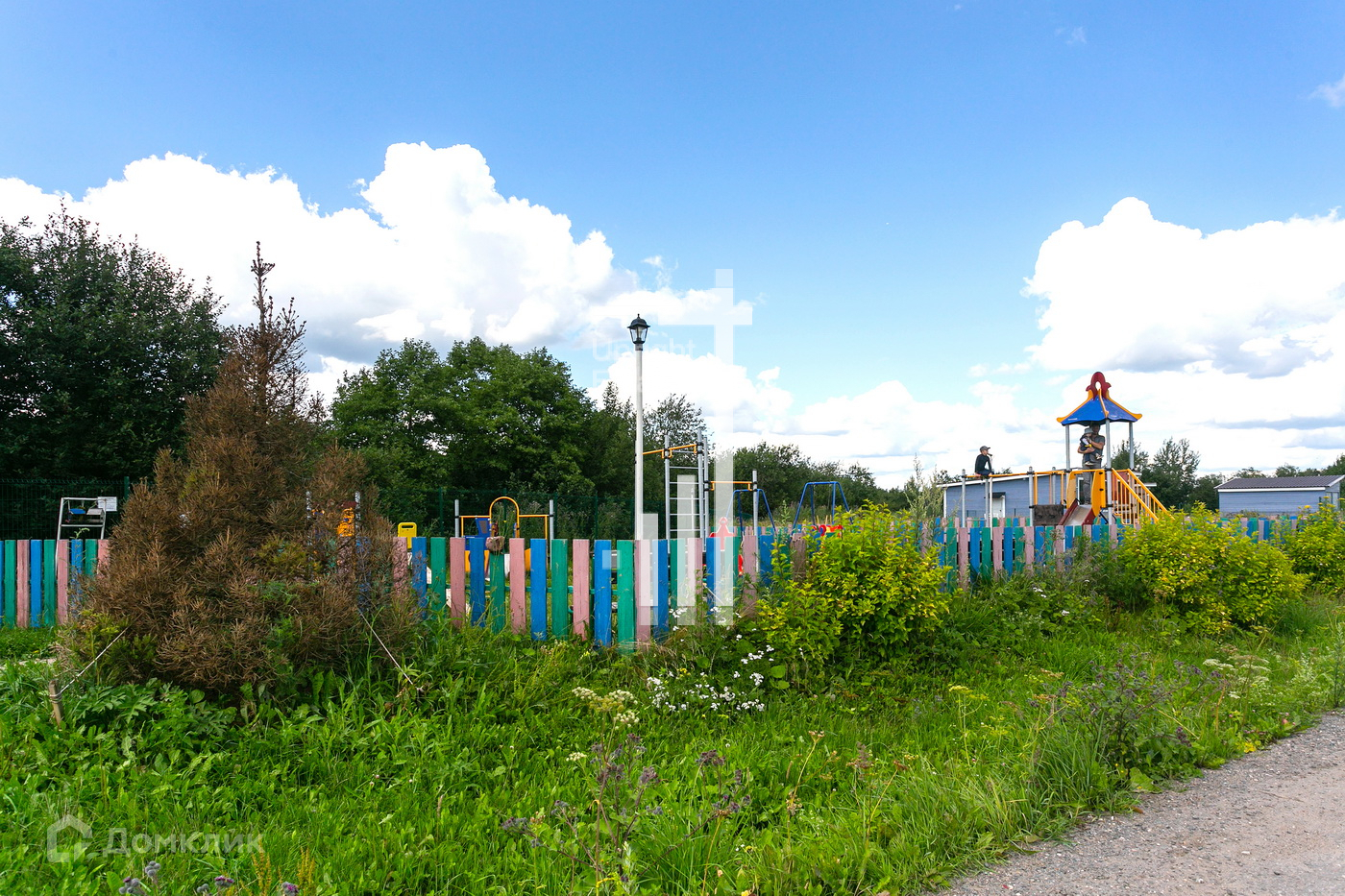 В поселке есть частный детский сад, детская площадка, футбольное поле (волейбол). Многие соседи живут круглогодично.