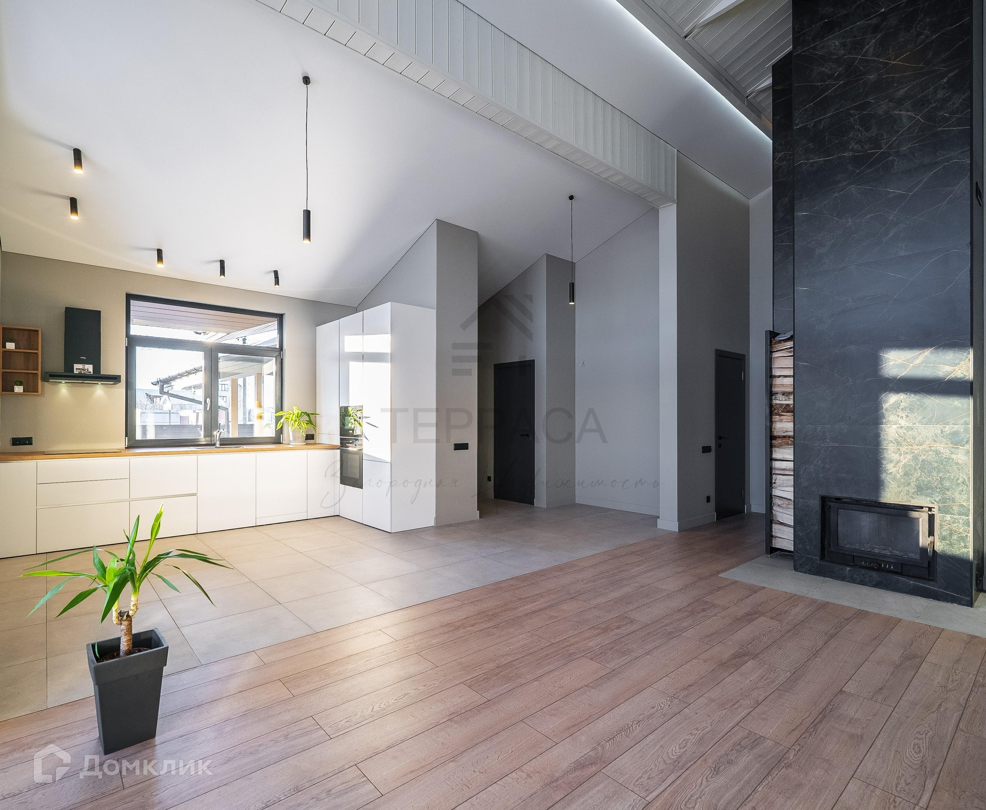 Большая крытая Терраса, прихожая с гардеробной и кладовой, коридор, холл, 3 изолированные спальни с панорамными окнами и выходом на террасу (одна из комнат это мастер-спальня с собственным с\у и гардеробом). Удобная кухня с собственной кладовой и мойкой у окна, полностью оборудована бытовой техникой. Зона столовой у окна и высокий потолок со вторым светом. Гостиная с крутым камином и зоной под ТВ. 2 с\у в кафеле, подвесная мебель и унитазы с инсталляцией, гигиенический душ. Сауна с большим окном в парной и техническим трапом для слива, тропический душ с термо регулировкой, ведро для обливания холодной водой. Постирочная с установленной стиральной машиной BOSCH и котельная полностью оборудована техникой.