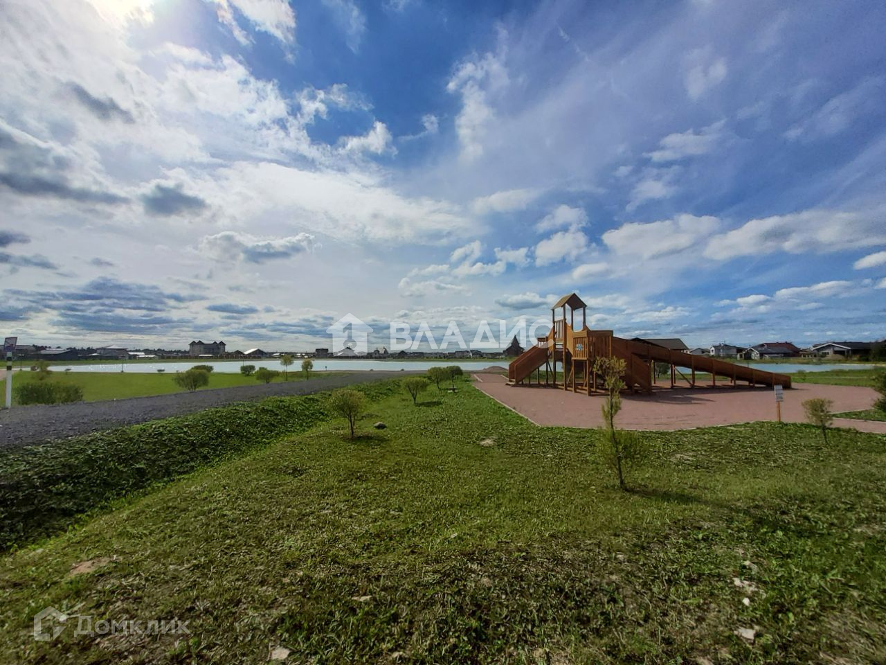 Выравнен, выполнен дренаж всего участка и ландшафтный дизайн.