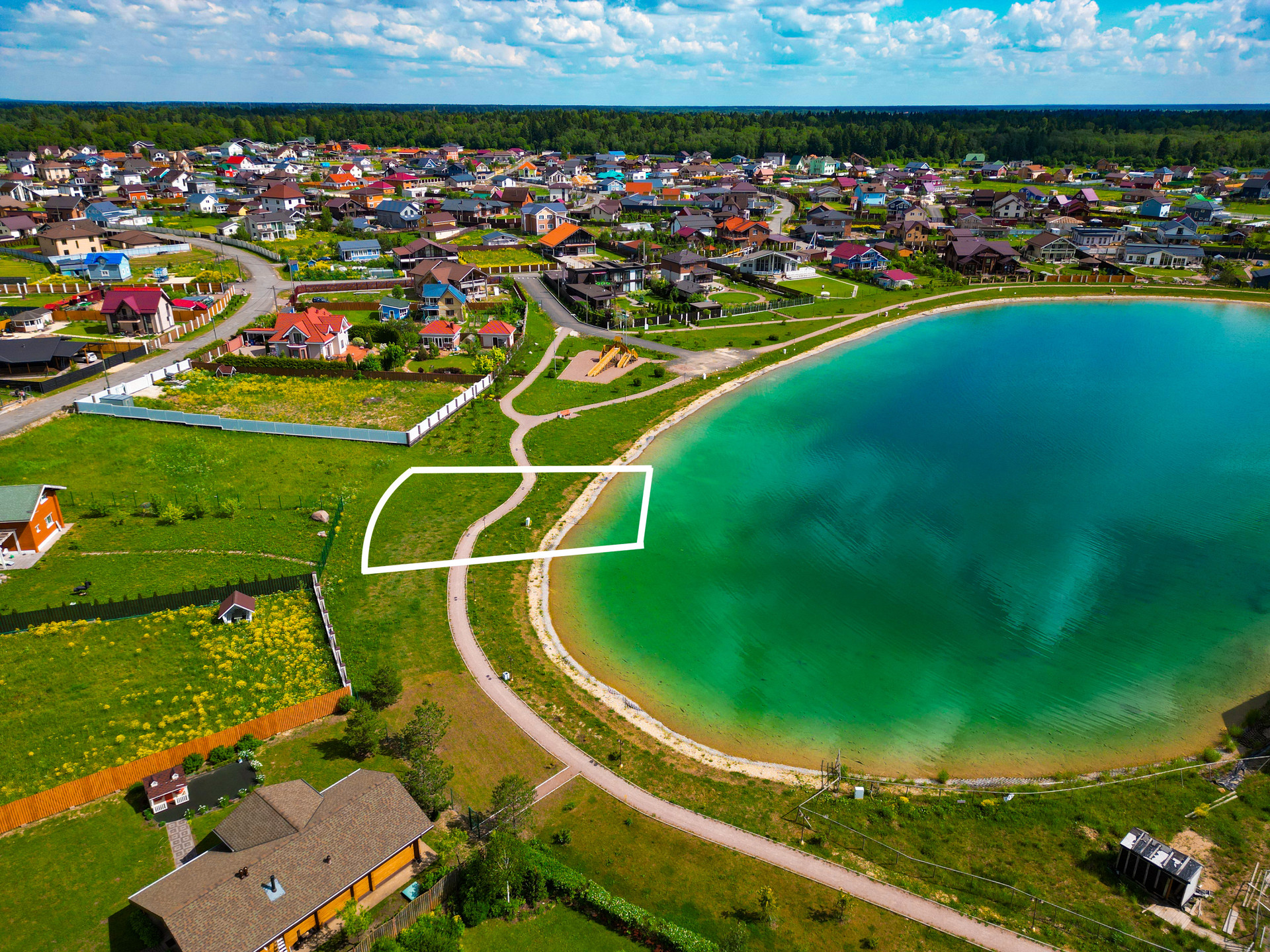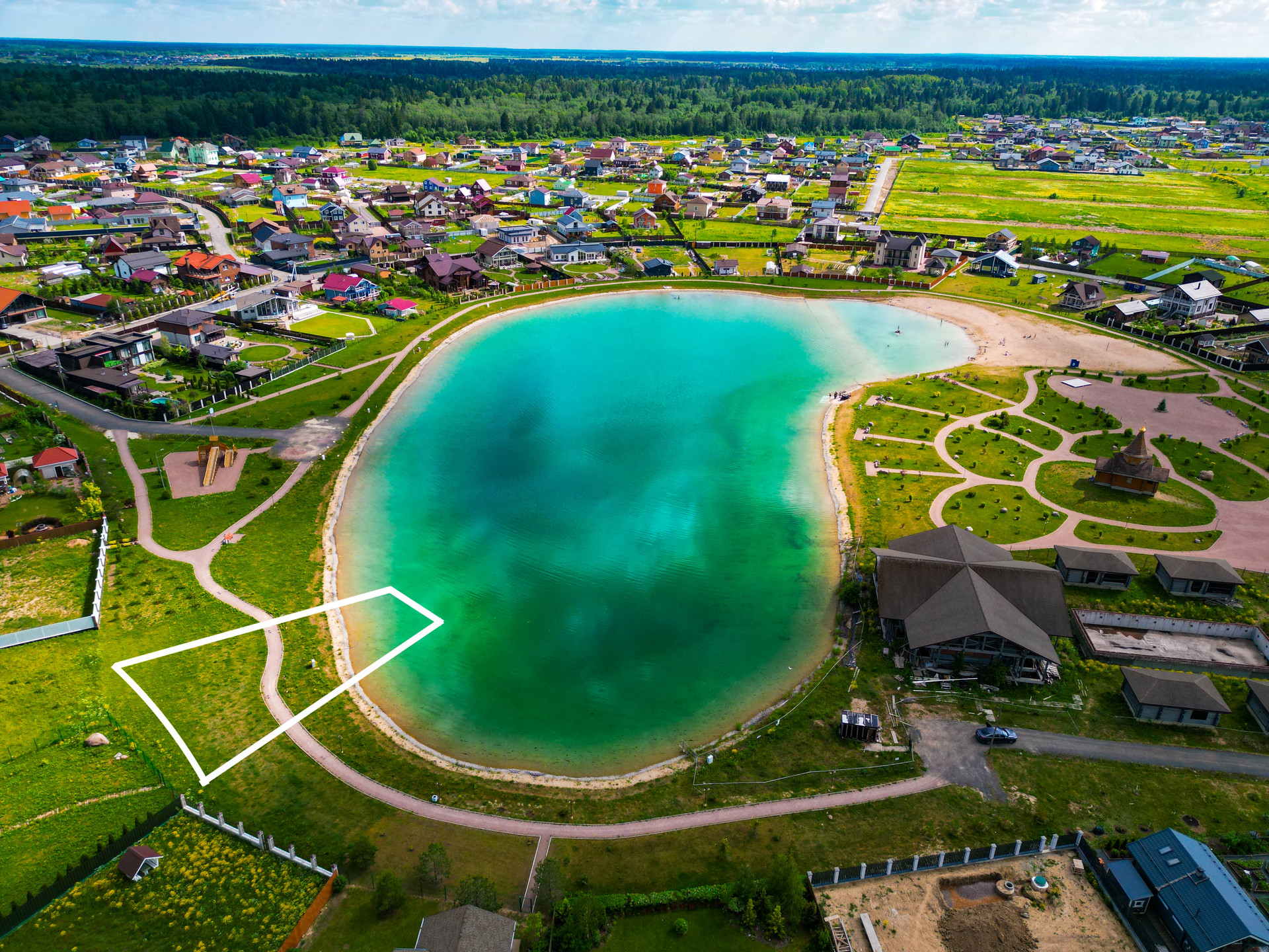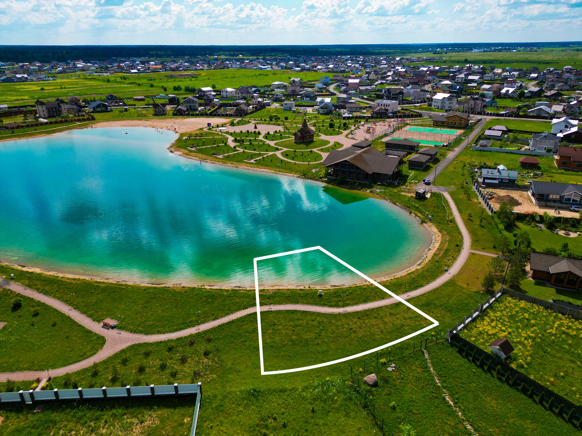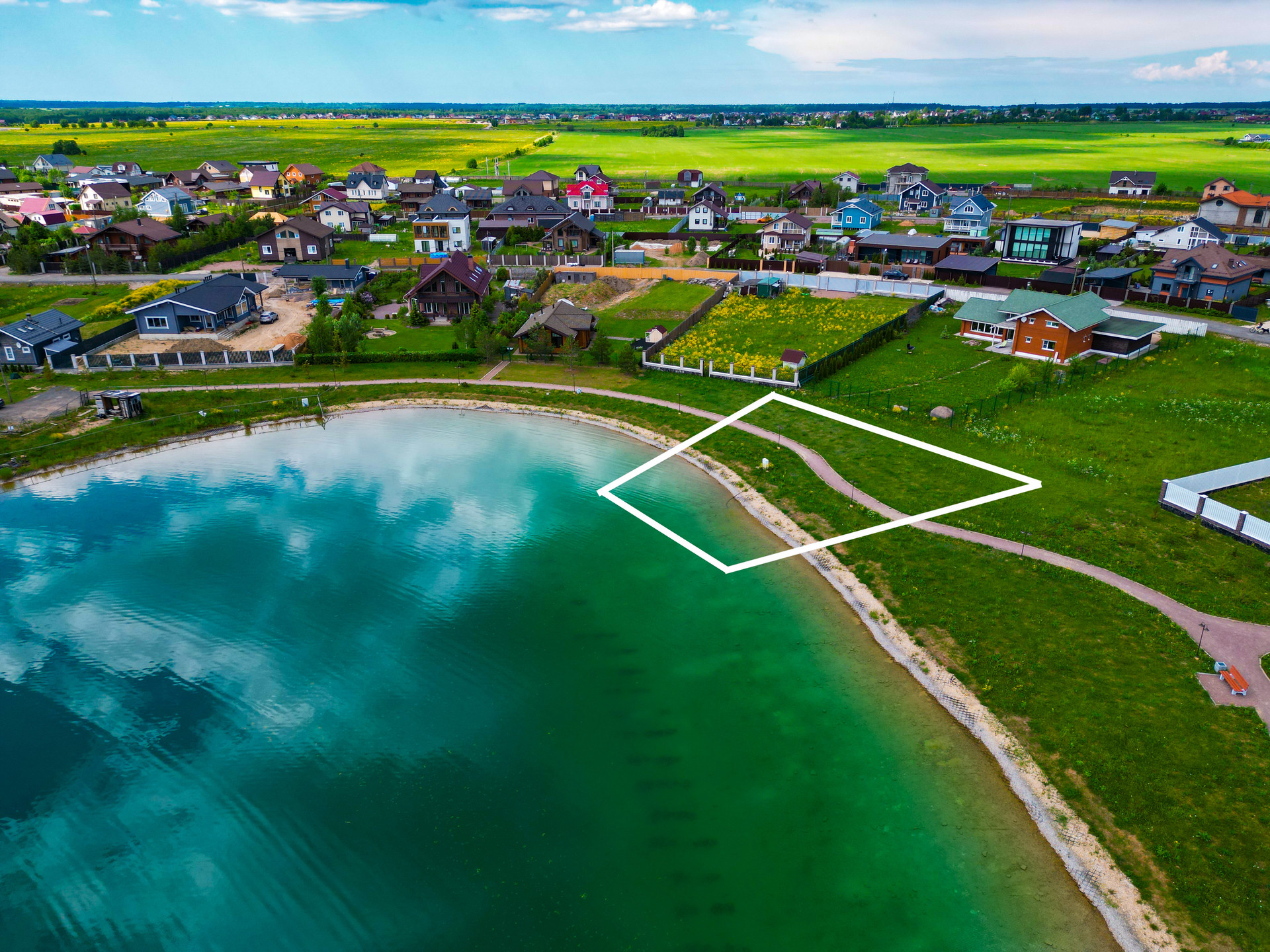 Предлагаю вашему вниманию на береговой линии, со своим озером ЭКСКЛЮЗИВНЫЙ участок 17,2 сотки. Электричество 15 кВт, магистральный газ, центральное водоснабжение - по границе. В 2 минутах пешком находятся детский сад и спорт площадка. Участок имеет отдельный кадастровый номер.