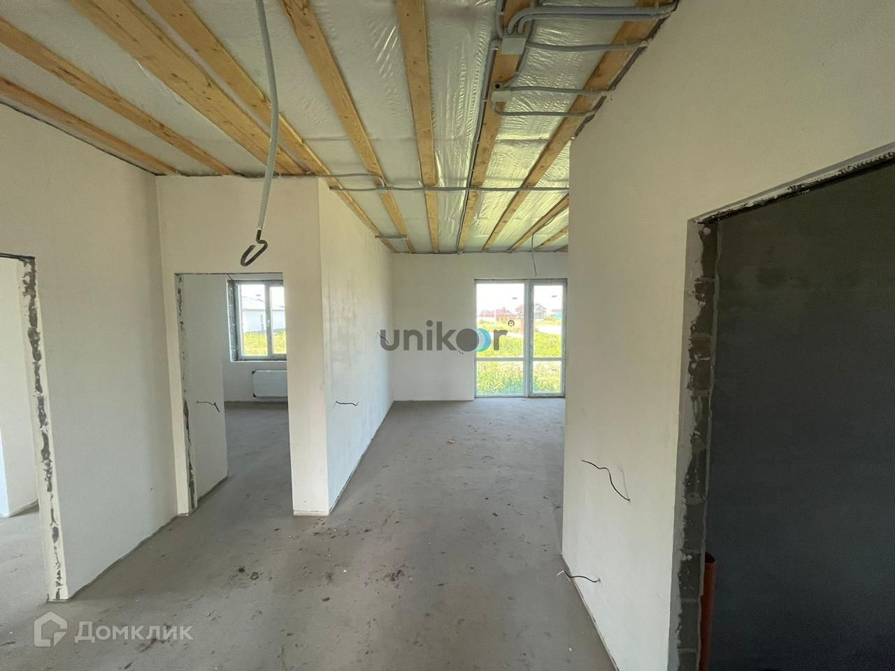 Особенности:- Разводка горячего и холодного водоснабжения- Отопление: тёплый водяной пол + радиаторы- Полусухая стяжка пола- Завершённая электропроводка- Стены выровнены по маякам- Собственный колодец и шамбо- Энергосберегающие окна