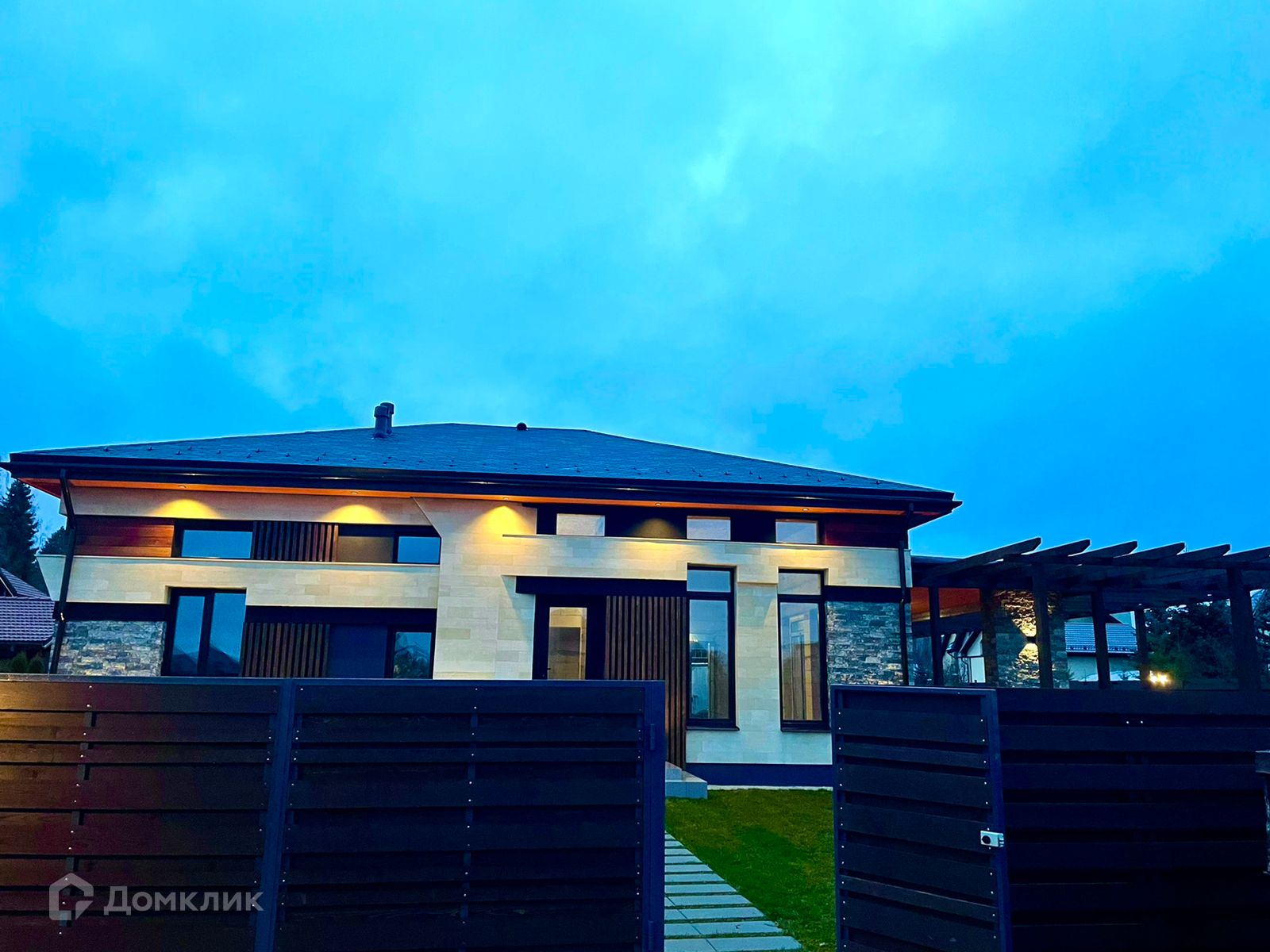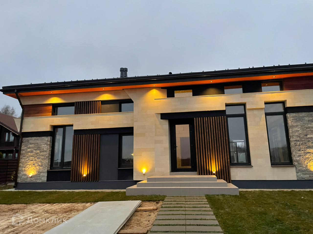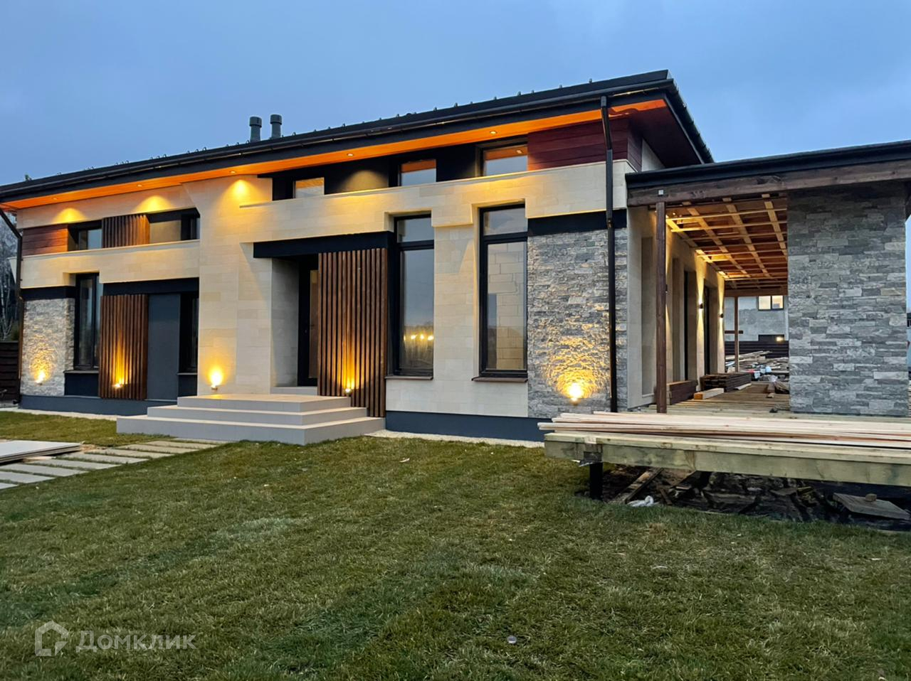 ID: 20374 Продается новый дом с большой террасой. 125 м2 - теплый контур, 135 м2 - терраса.  В доме: 3 спальни, кухня, гостиная, 2 ванные комнаты, гардеробная. Особое архитектурное достоинство - фрамужный свет второго уровня, что увеличивает инсоляцию и объем внутри помещений. Высокий потолок и верхний ряд окон позволяют сделать антресоль в спальне. Состояние - под отделку. Охраняемый камерный поселок. Все соседи построились и живут. Один из последних участков в поселке. Низкие поселковые сборы. Рядом в 3-х км - элитный отель Хилтон Garden Inn c премиальной инфраструктурой. Вдали от дорог, тишина, лес, пенье птиц...