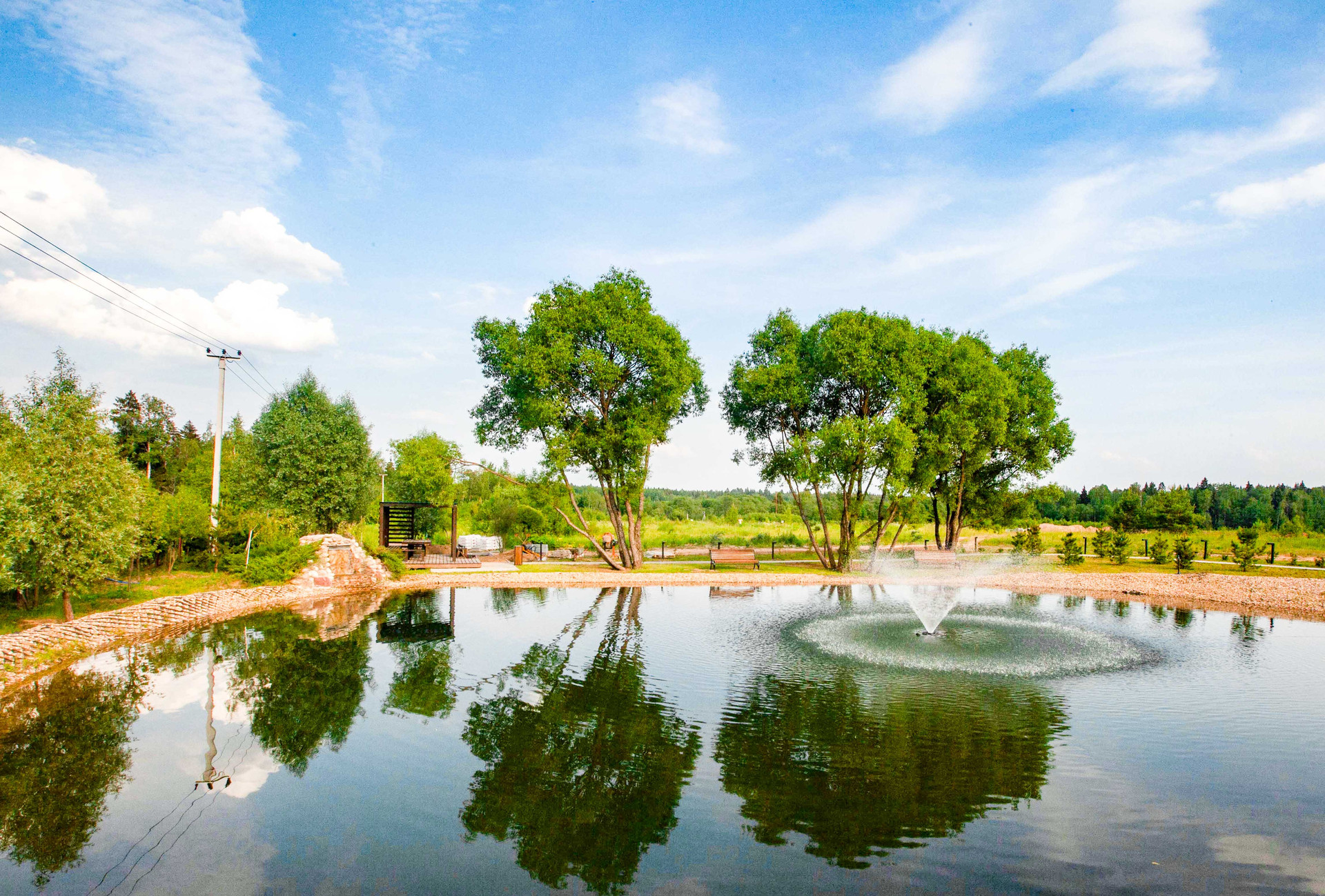 • Пруд с оборудованным пляжем, местами для рыбалки и отдыха на природе, зона барбекю с беседками