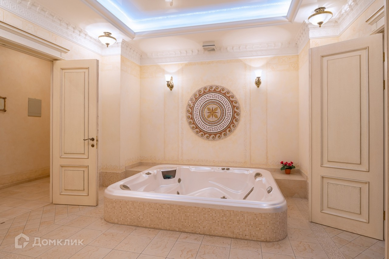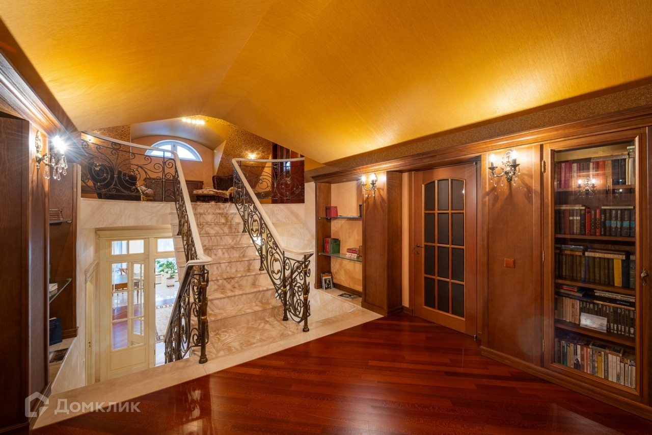 Лот №41262. Дом под ключ 660 кв.м. на участке 15.00 соток. Количество спален: 6. Коттеджный посёлок «Береста», Новорижское шоссе, 1 км от МКАД. Объект расположен в охраняемом коттеджном поселке на берегу водохранилища - развитая инфраструктура, транспортная доступность, респектабельное окружение. Участок в тихой части поселка c ландшафтным дизайном: хвойные деревья, небольшая березовая роща, фруктовый сад, цветники, дорожки из натурального камня, газон. На участке имеется беседка с зоной барбекю (горячая и холодная вода, санузел). Отапливаемый гараж на 3 автомобиля с полностью оборудованной квартирой для персонала с отдельным входом. Гостевая парковка. Автоматическое открывание въездных ворот. Установлена система автоматического полива и индивидуальное освещение участка.  Лаконичная продуманная планировка, интерьеры выполнены в легком классическом стиле. В отделке использовались качественные натуральные материалы - мрамор, гранит, художественная штукатурка, мозаика, позолота, художественный паркет из дуба, карельской березы и красного дерева, кованные элементы. Вся мебель, техника, люстры и текстиль от ведущих мировых производителей. Фасады дома и построек выполнен из натурального шамота, на крышах - медная черепица TEGOLA (Италия) Цоколь: сауна KLAFS (Германия), хамам, душевая с гидромассажем, SPA HotSpring (США), тренажерный зал, домашний кинотеатр с техникой Hi End, гардеробная комната для хранения сезонной и спортивной одежды, прачечная оборудованная техникой MIELE (Германия), санузел, котельная. 1 этаж: холл, гостиная с камином и зимним садом, имеющая выход на участок, гостевая спальня с индивидуальным санузлом, кабинет для приемов, бильярдная, кухня-столовая с кладовой, гостевой санузел. 2 этаж: хозяйский блок состоящий из спальни, будуара с камином, индивидуального санузла, гардеробной, большая гостиная с зимним садом, 2 спальни, имеющие индивидуальные санузлы и гардеробные. Мансарда: 2 спальни, библиотека-кабинет, кальянная в восточном стиле, санузел.