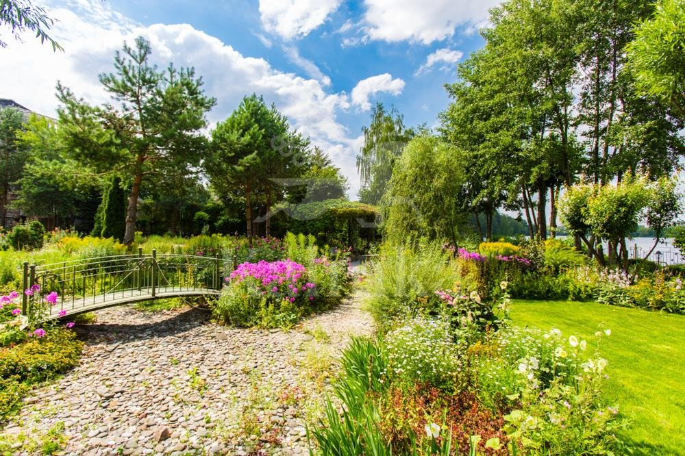 Роскошный особняк на берегу реки с собственным выходом к воде и обустроенным эллингом. На приусадебной территории высажены редкие породы деревьев, проложены дорожки, освещение, полностью выполнен ландшафтный дизайн, обустроены прогулочные зоны с альпийской горкой, ручьём и уютным тенистым садом.
