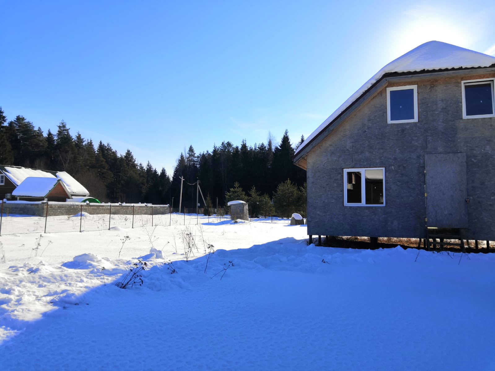 На земельном участке расположен 2 этажный дом, 2018 года постройки, общей площадью 160 кв.м. Фундамент свайно-ростверковый, окна пластиковые, кровля-металлочерепица, материал стен ОСП, утепление 150 мм. мин.вата.