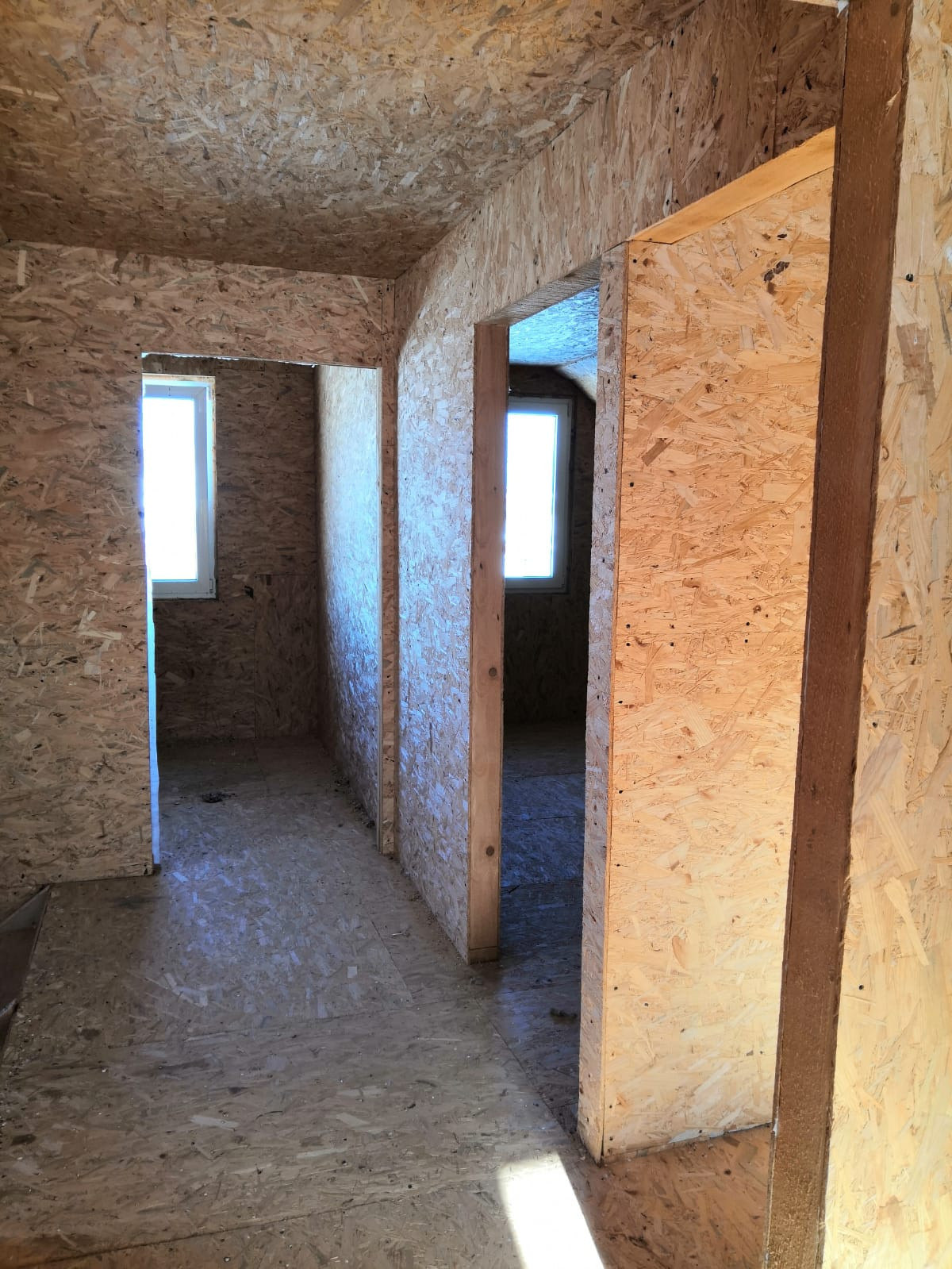 На втором этаже расположены три изолированных спальни 12+15+10кв.м., помещение под сан.узел.