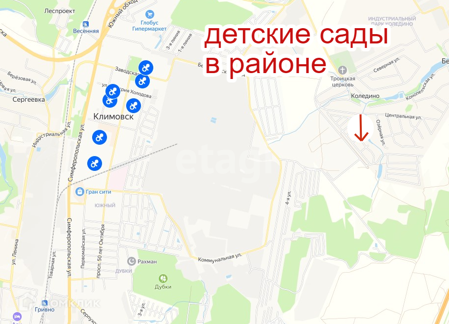 - Город Подольск в 3 км от поселка