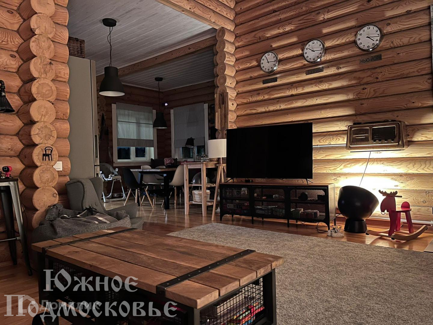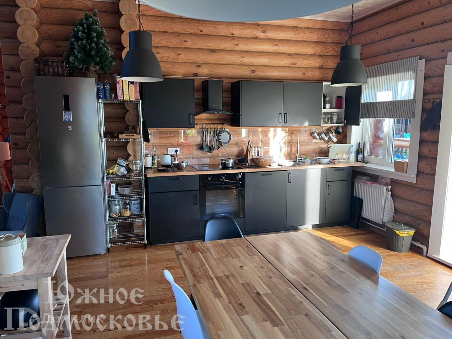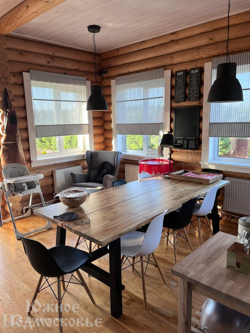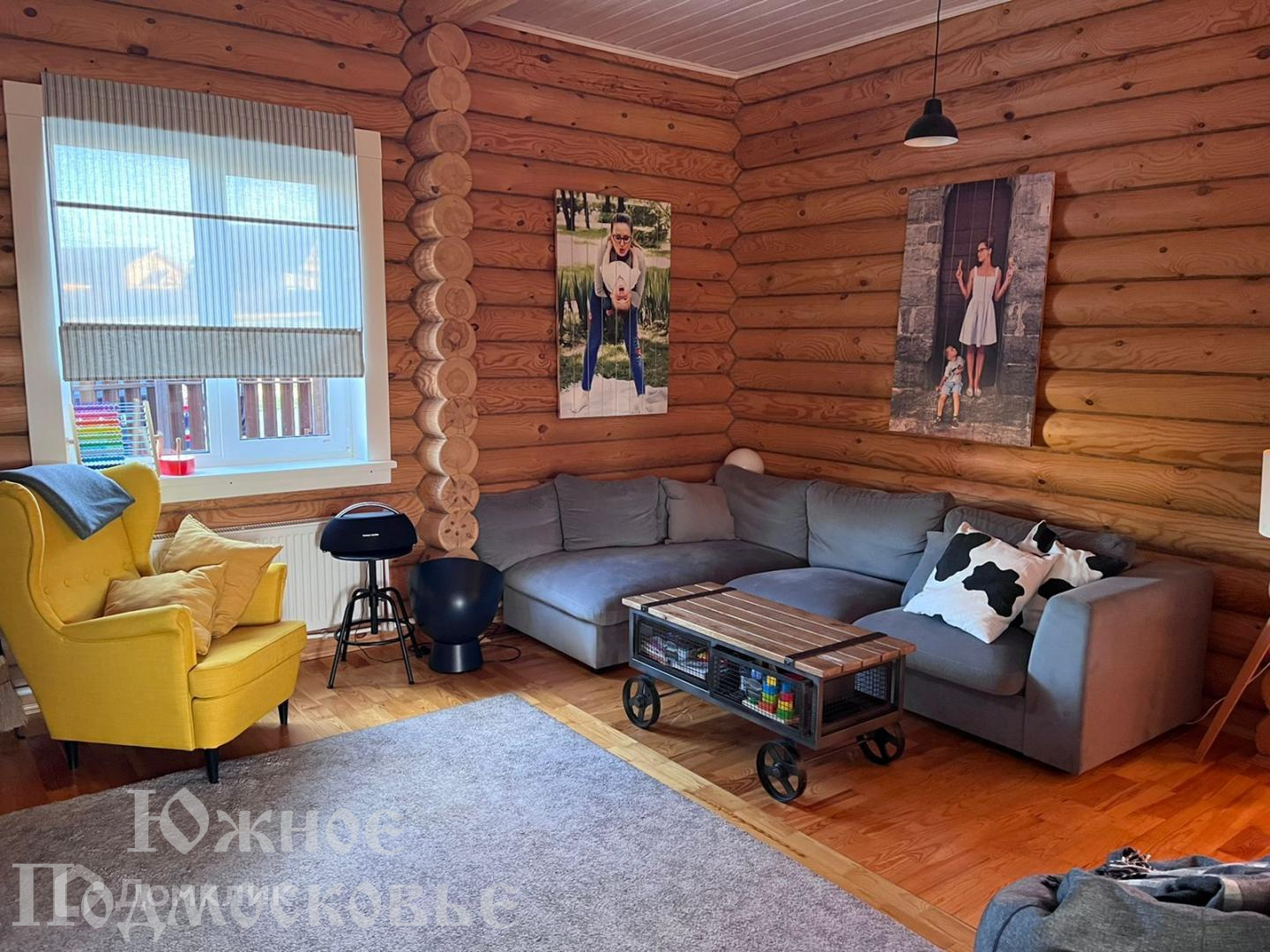 Дом из бревна, с мебелью и техникой.