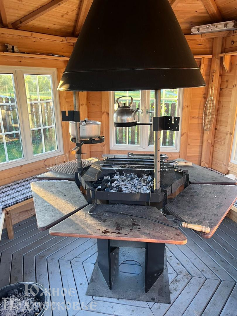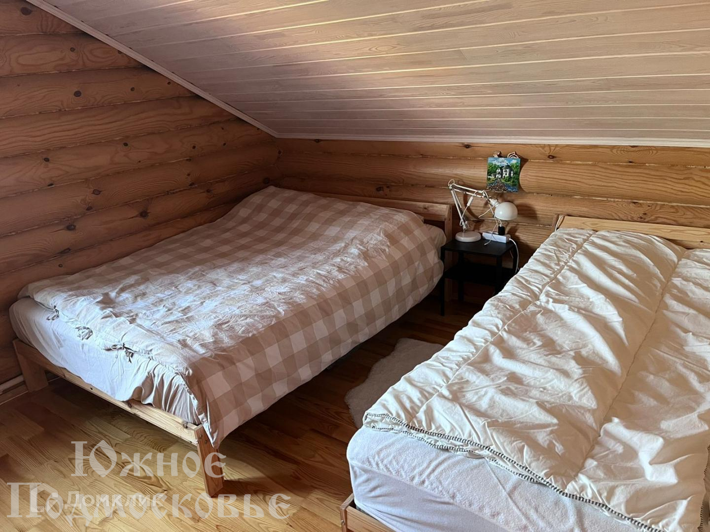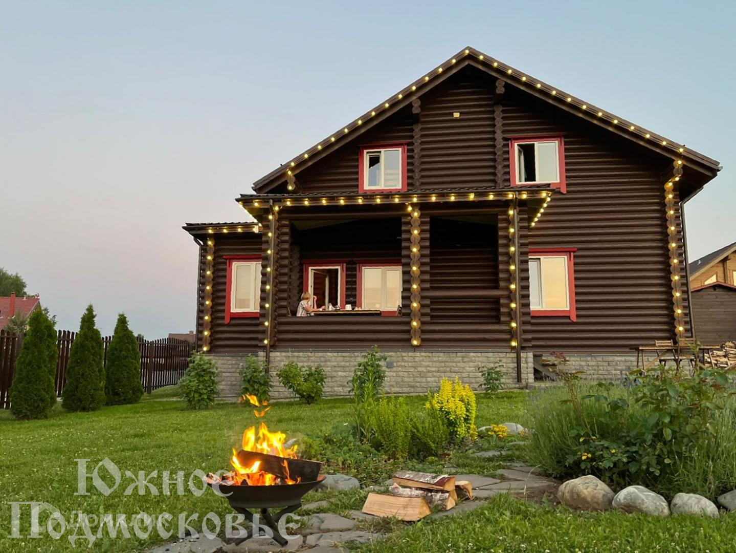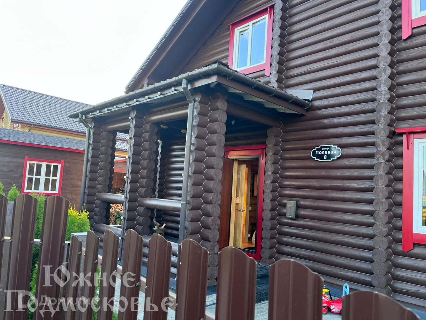 Дом из бревна, с мебелью и техникой.