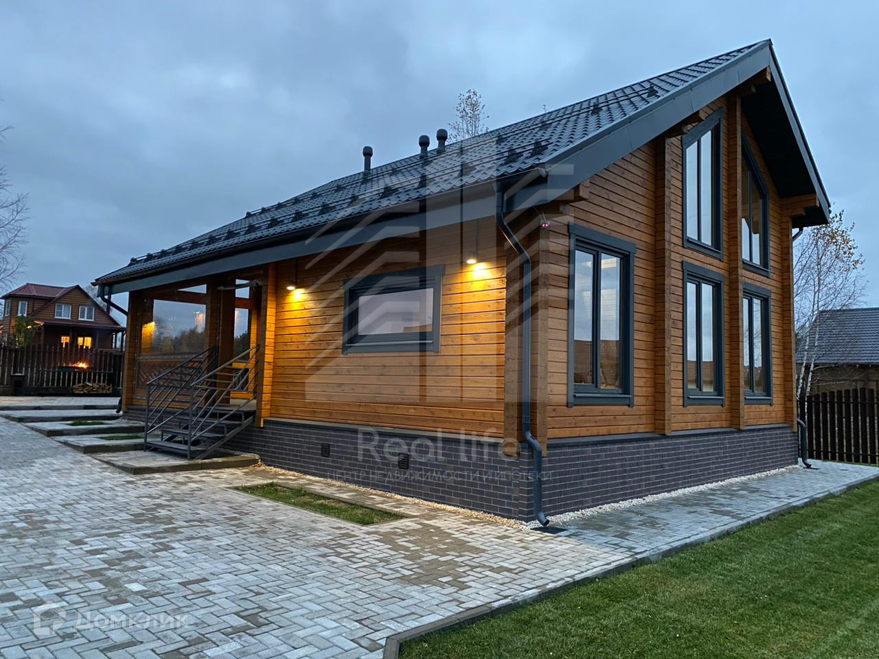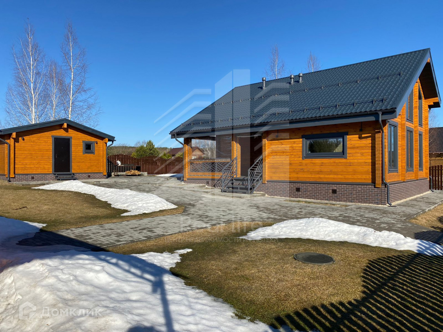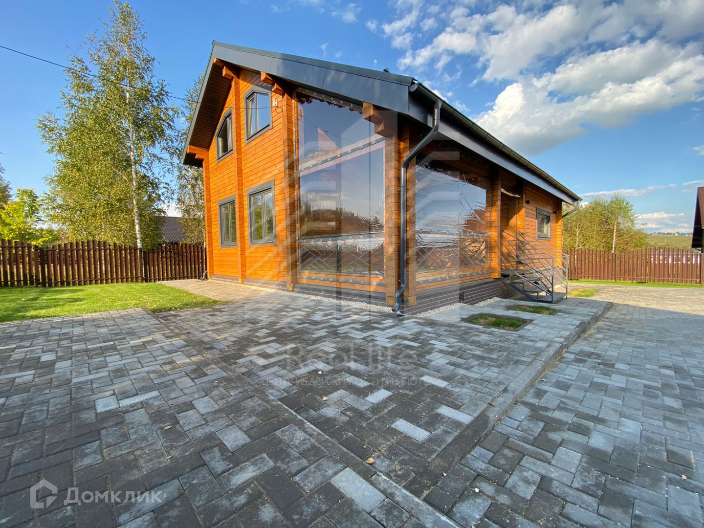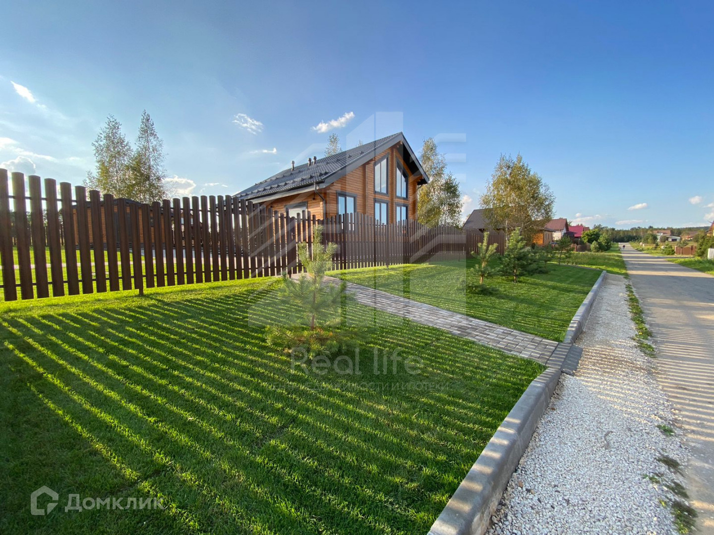 Участок 8 соток, ровный, огорожен забором. Установлены откатные автоматические ворота, брусчаткой вымощены дорожки, парковка на 2 машиноместа, отмостка. На участке рулонный газон, сделана дренажная система.