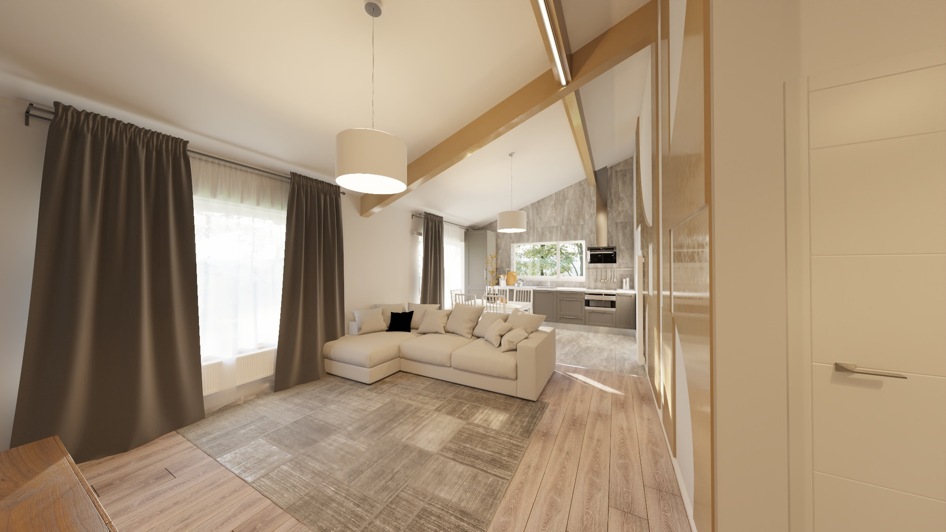 Открытое пространство внутри жилых помещений, образованное беспотолочной конструкцией, создает дополнительный объем.