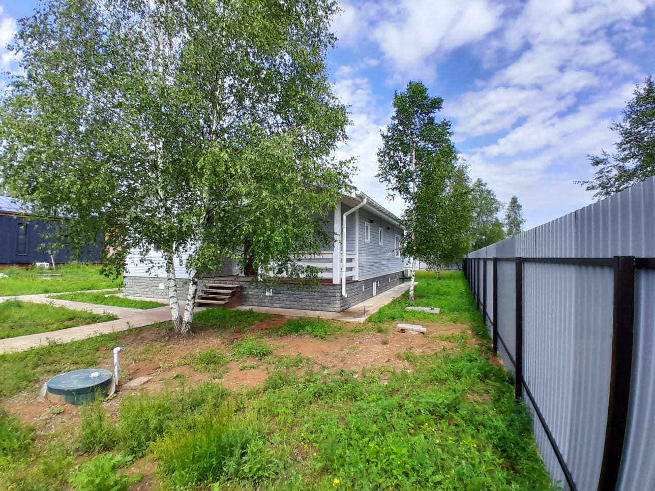 Участок 10 соток ровный, правильной формы. Огорожен по всему периметру, фасадный забор - в едином стиле поселка "евро-штакетник". Установлены откатные автоматические ворота. Вокруг дома выполнена отмостка и забетонирована парковочная зона перед домом. Разработаны 4 варианта ландшафтного дизайна участка на выбор.
